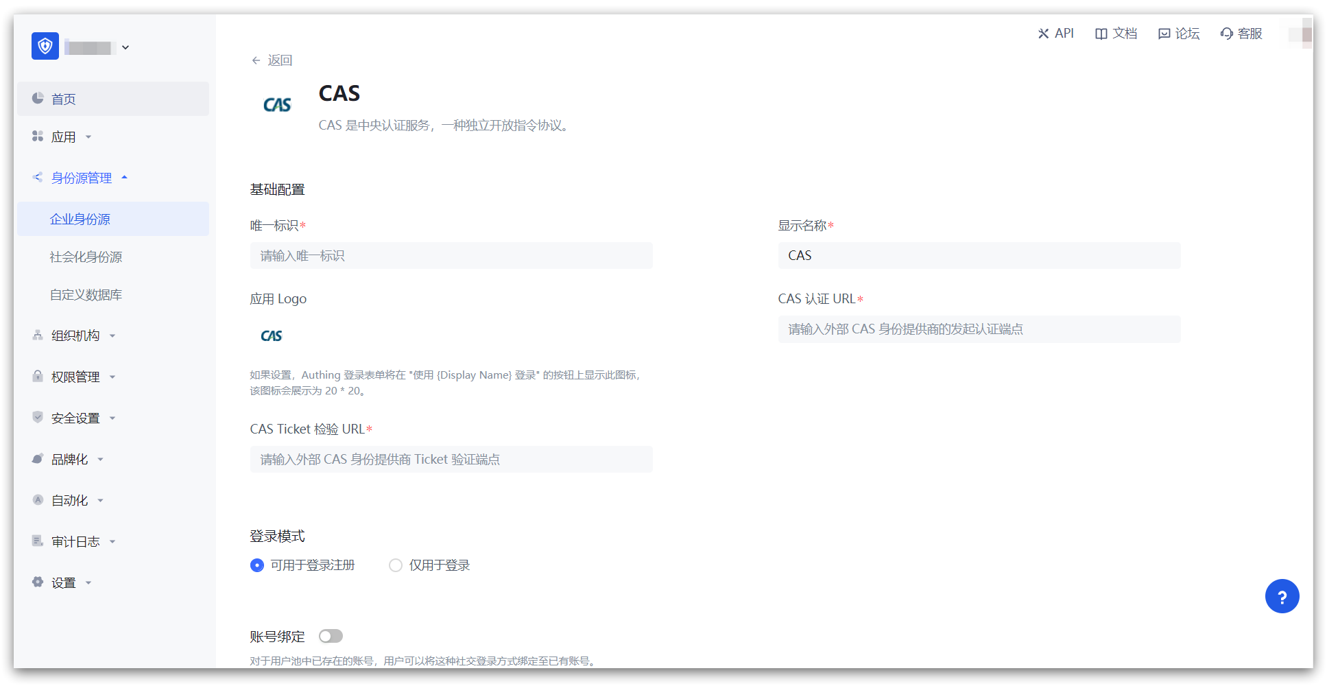 Authing 支持使用 CAS 协议进行联邦认证,详情请查看文档连接 CAS 身份源。