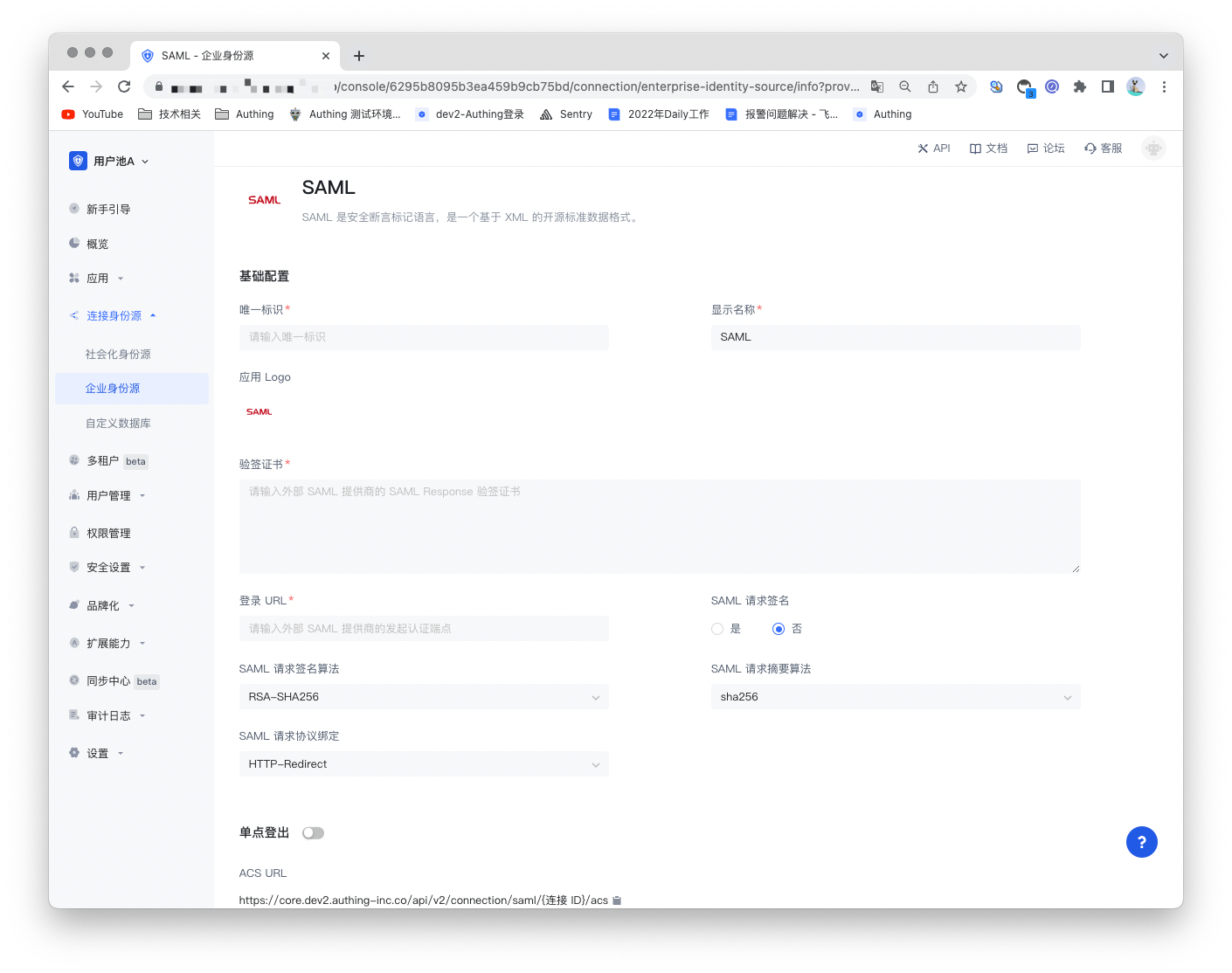 ¶ 第二步:在 Authing 控制台配置 SAML 身份源