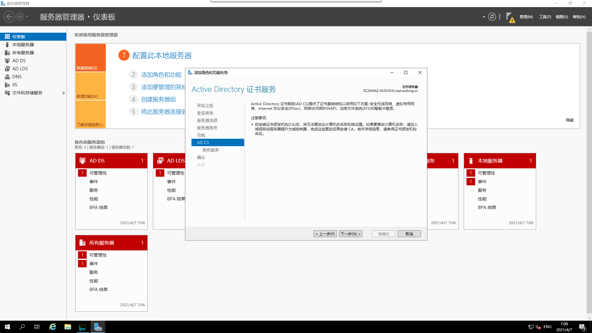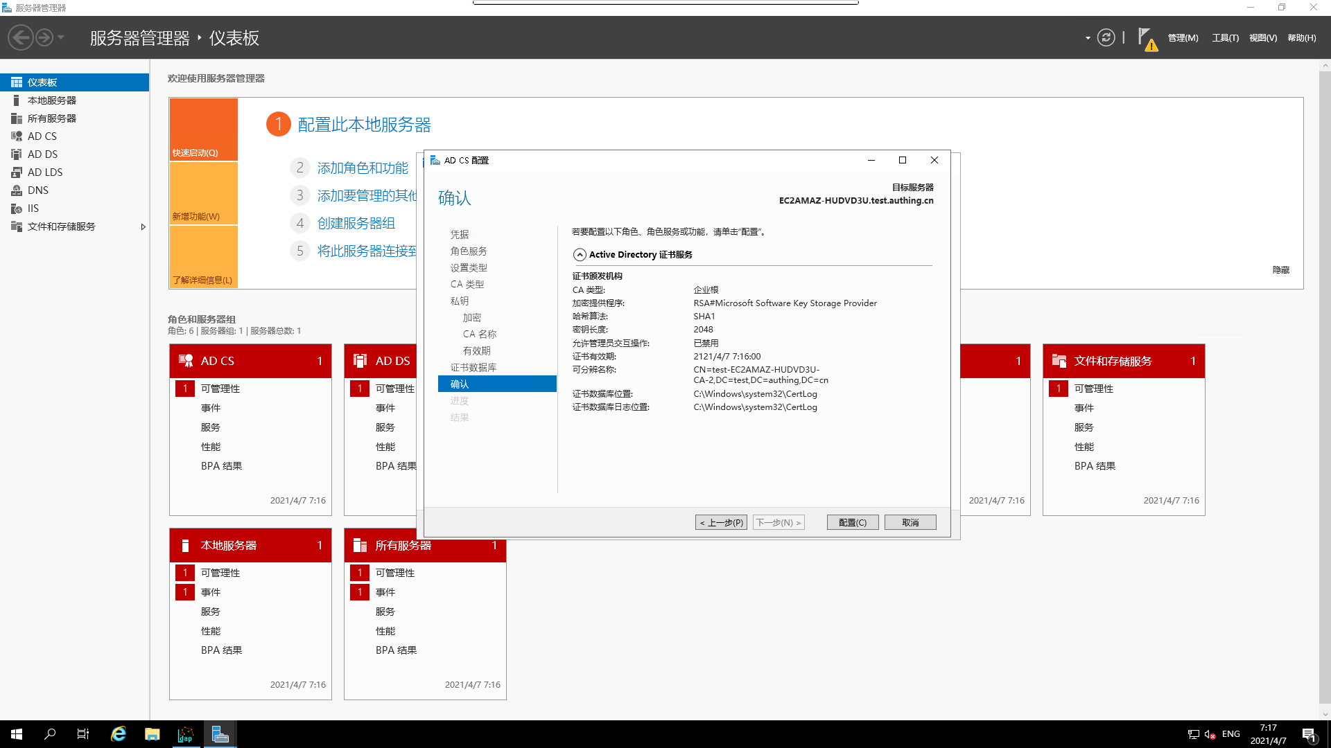 配置 AD CS 是为了完成 AD CS 的初始化工作, 以完成后续功能的构建。