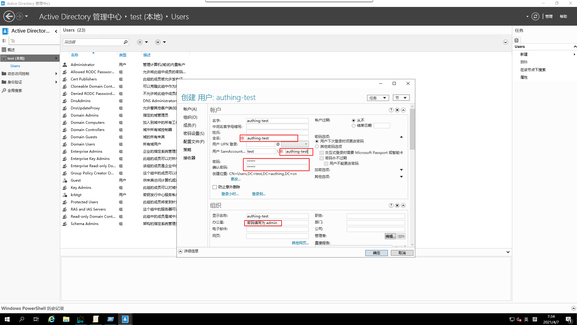 - Authing 中的用户名现在并没有存在设置特殊的规则进行验证筛选, 也就是默认 Authing 中的用户的 username 可以是任何字符串。但是 AD 中的用户名却不是, AD 中的 sAMAccountName 属性, 有一定的限制, 这样就导致了 Authing 到 AD 的数据需要处理这些差异性, 而这些差异性的导致来自于不同的系统, 又是较为合理常见的, 我们假设增加一个 Authing 用户 username 为