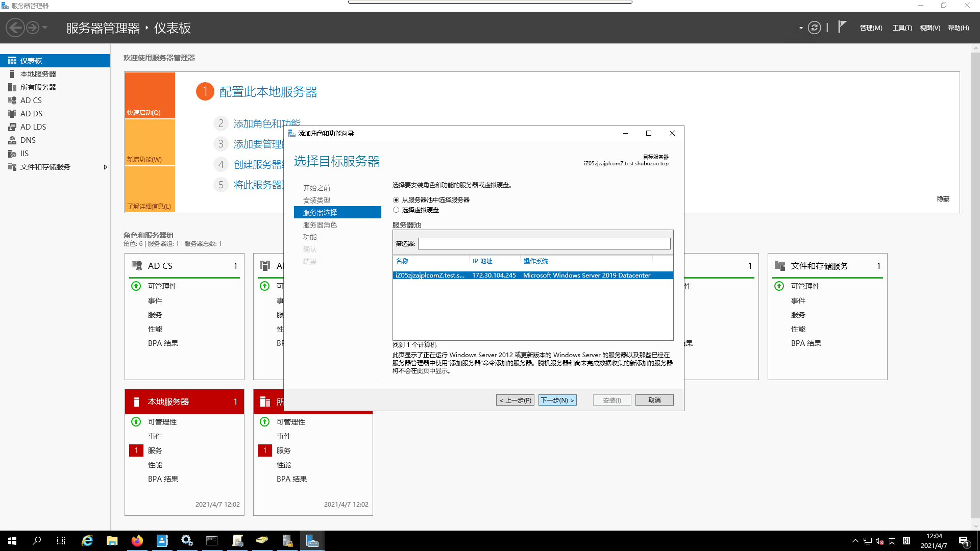 在 Windows 服务器安装 Active Directory 以及相关配置