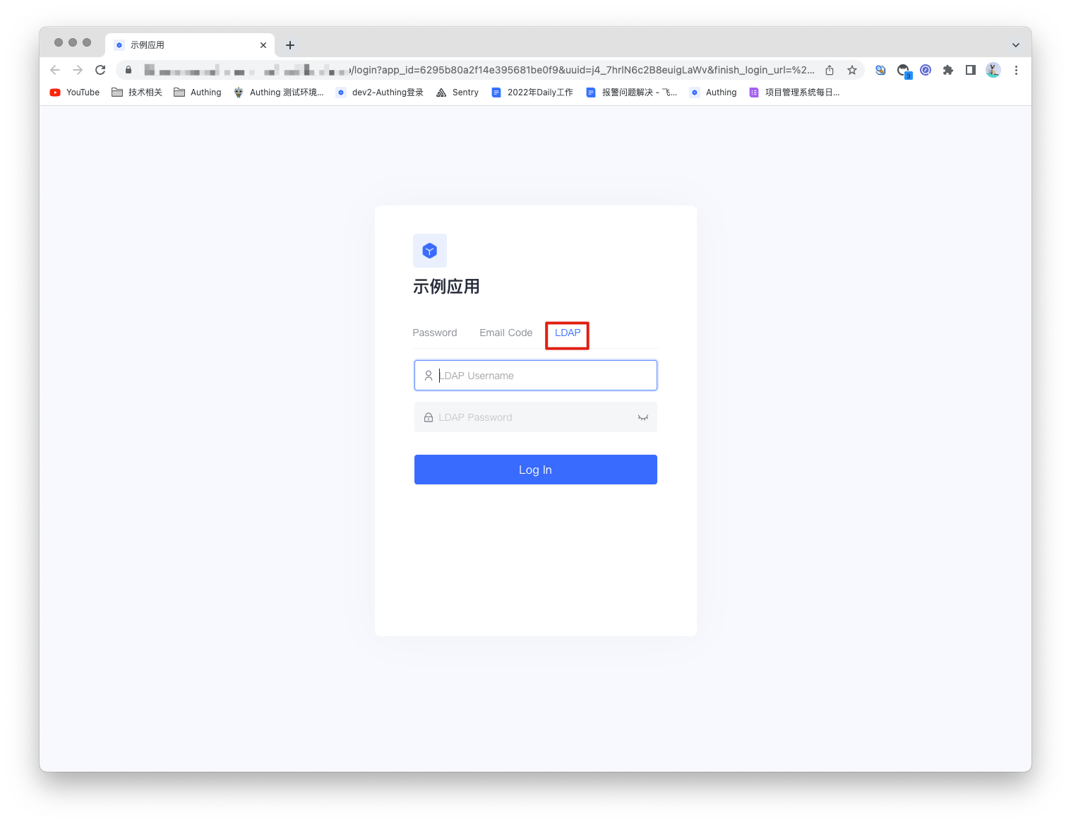 3.3 Experience the enterprise login of LDAP on the login page.