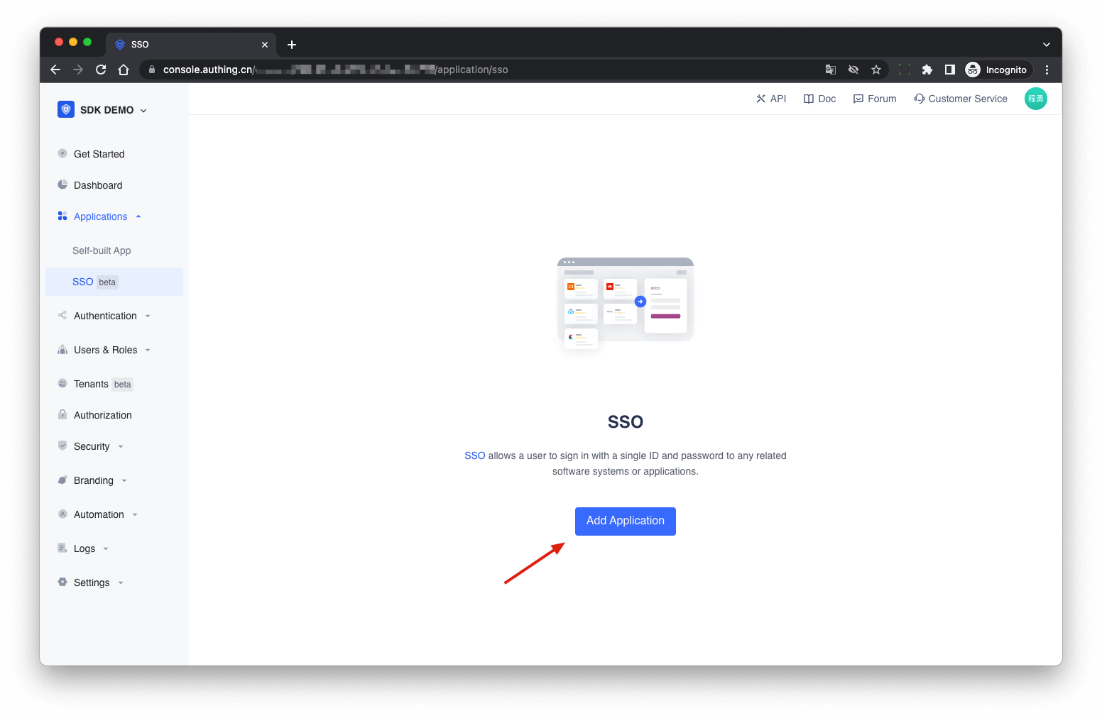 Go to the menu Applications > SSO, click Add Application in the upper left corner, then select Self-built App, find the application you just created in the list below, click +, the configuration of multi-application SSO is completed.
