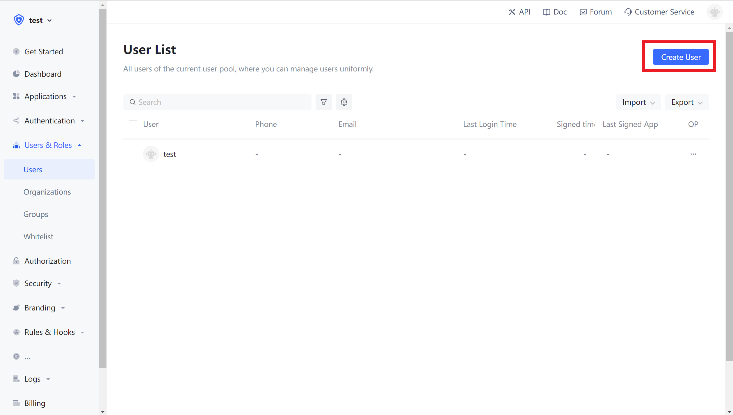 Firstly, create two users in Authing, which are user1@123.com and user2@123.com respectively
