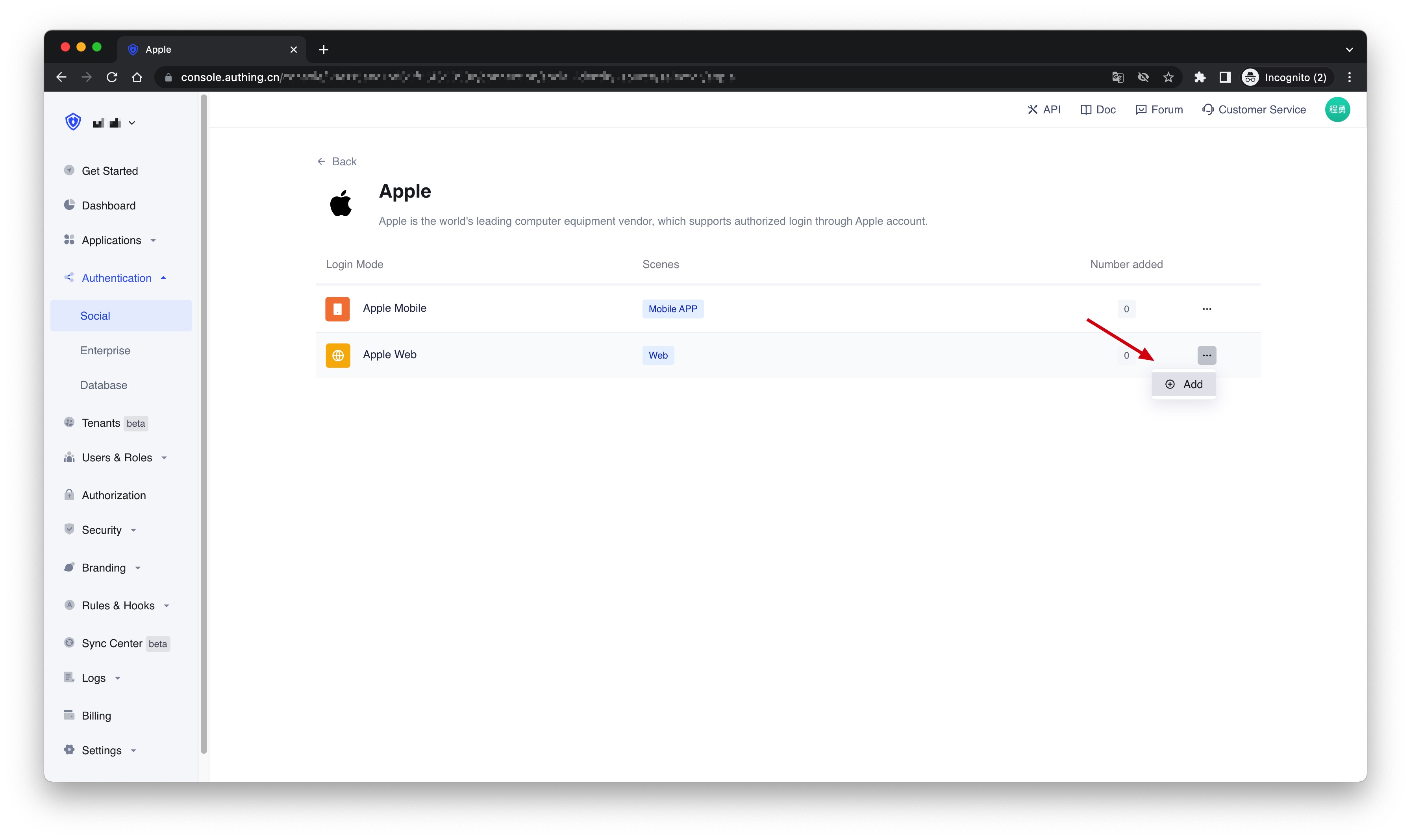 2.3 Continue to click the "Apple Web" login mode, or click "... Add".