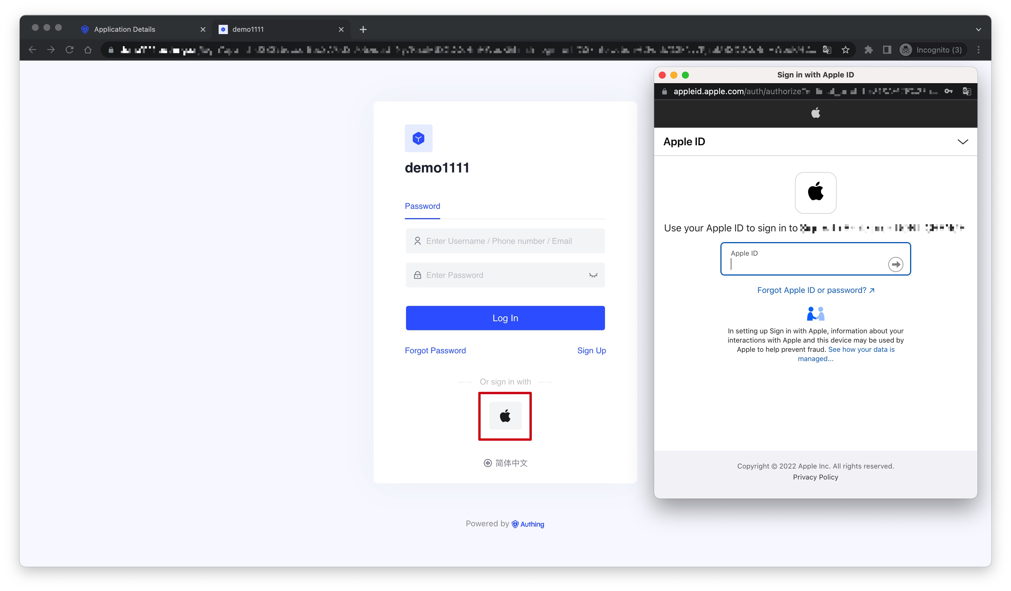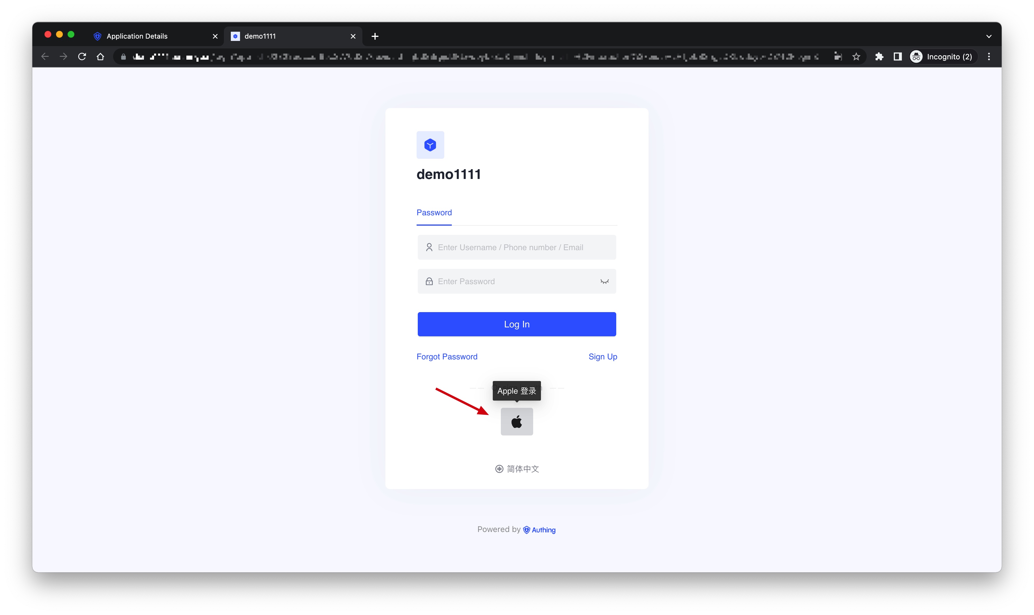 3.3 Click the "Experience Login" button of the app in the Authing Console, and experience the "Apple Web" login in the pop-up login window