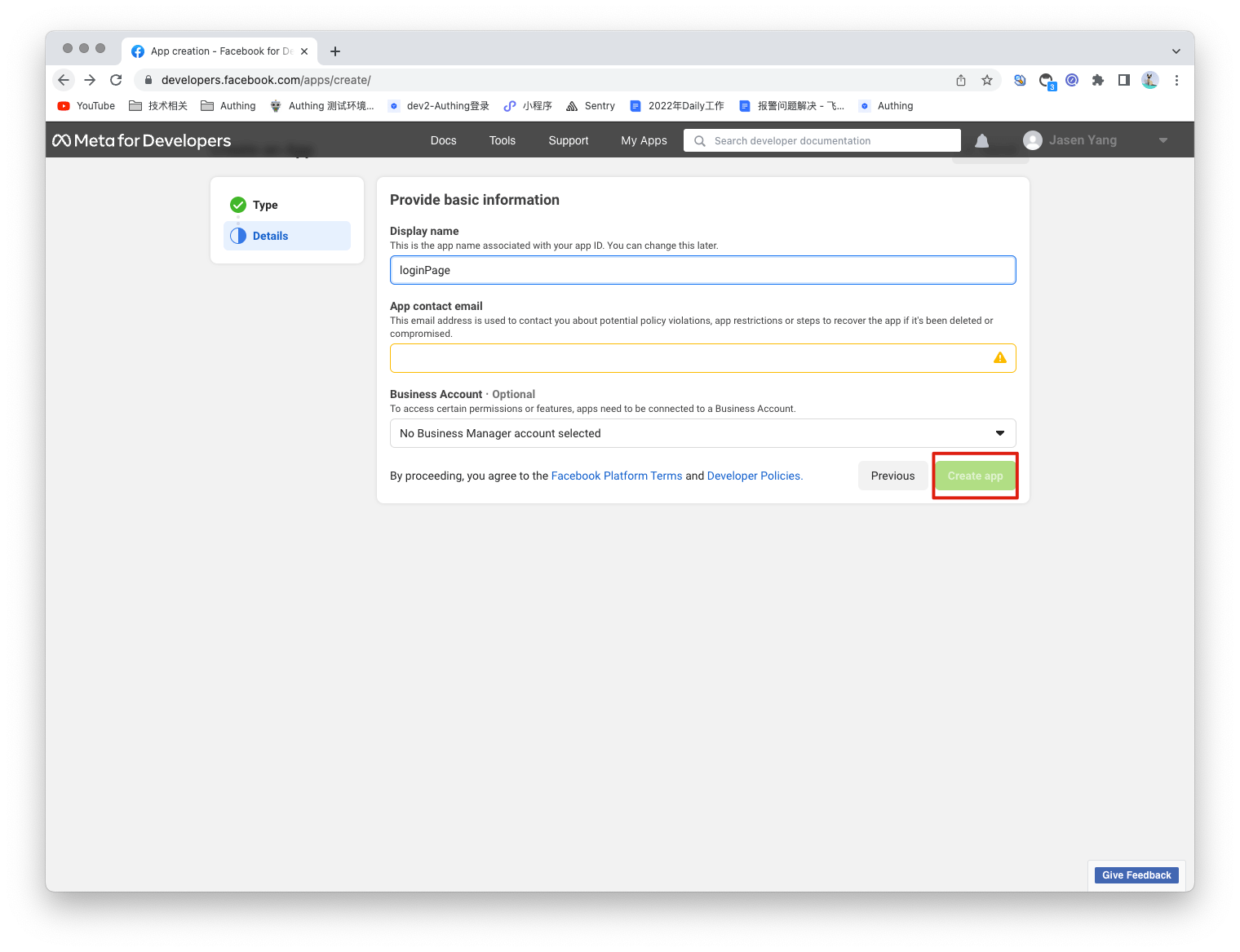 3.1 Create an app in the Authing console. For details, see: How to create an app in Authing.