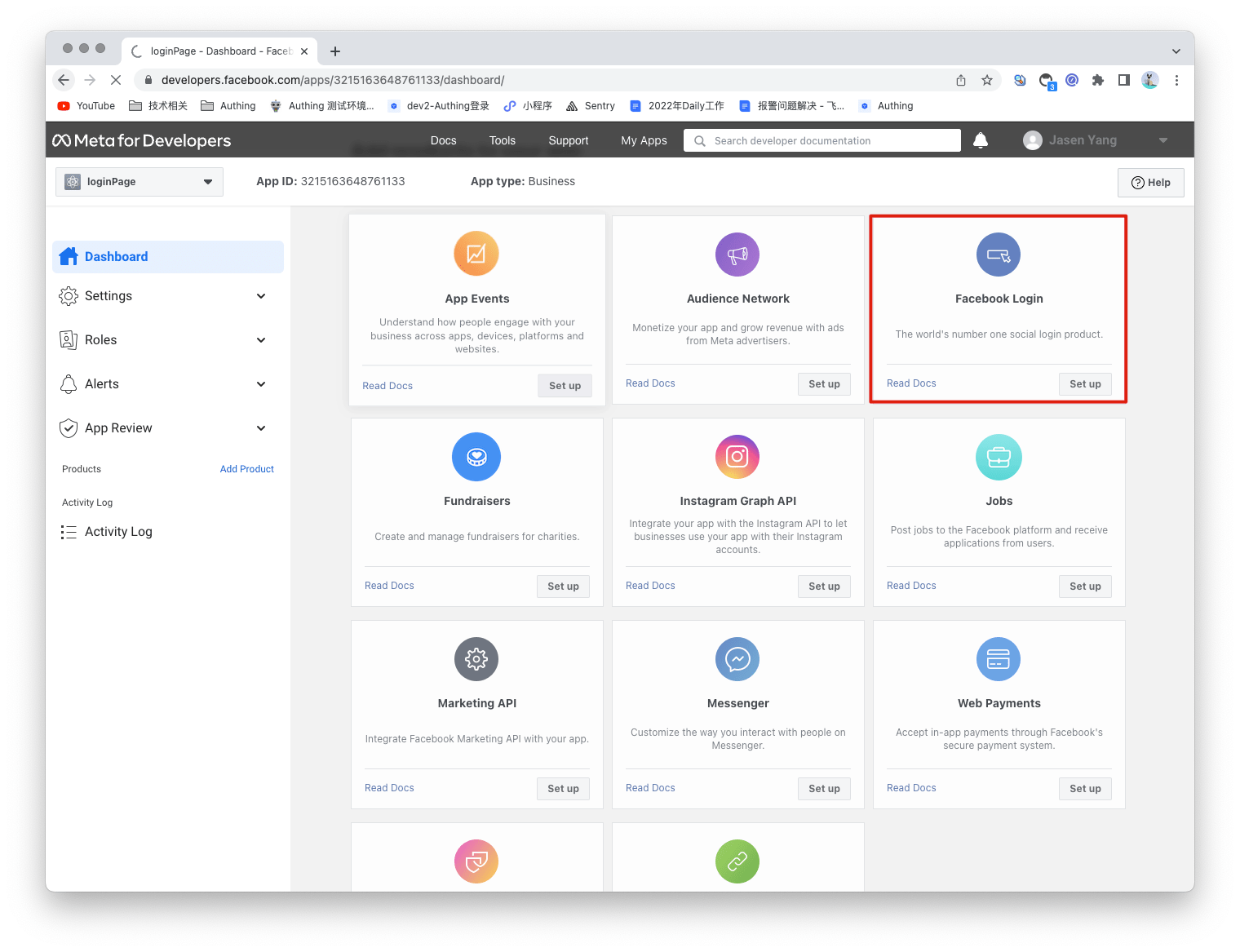 In the control panel, find the Facebook Login product and click Settings to add it to your app. Then find the app ID and app key in Settings > Basic in the menu on the left, and record it.