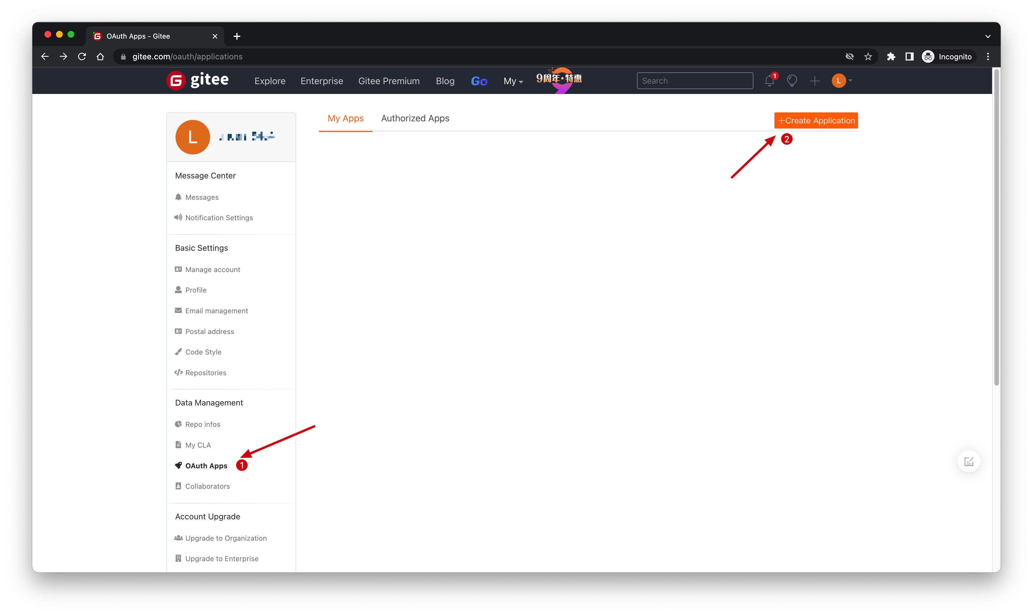 - If you don't have a Gitee account, please go to gitee.com (opens new window) to register an account