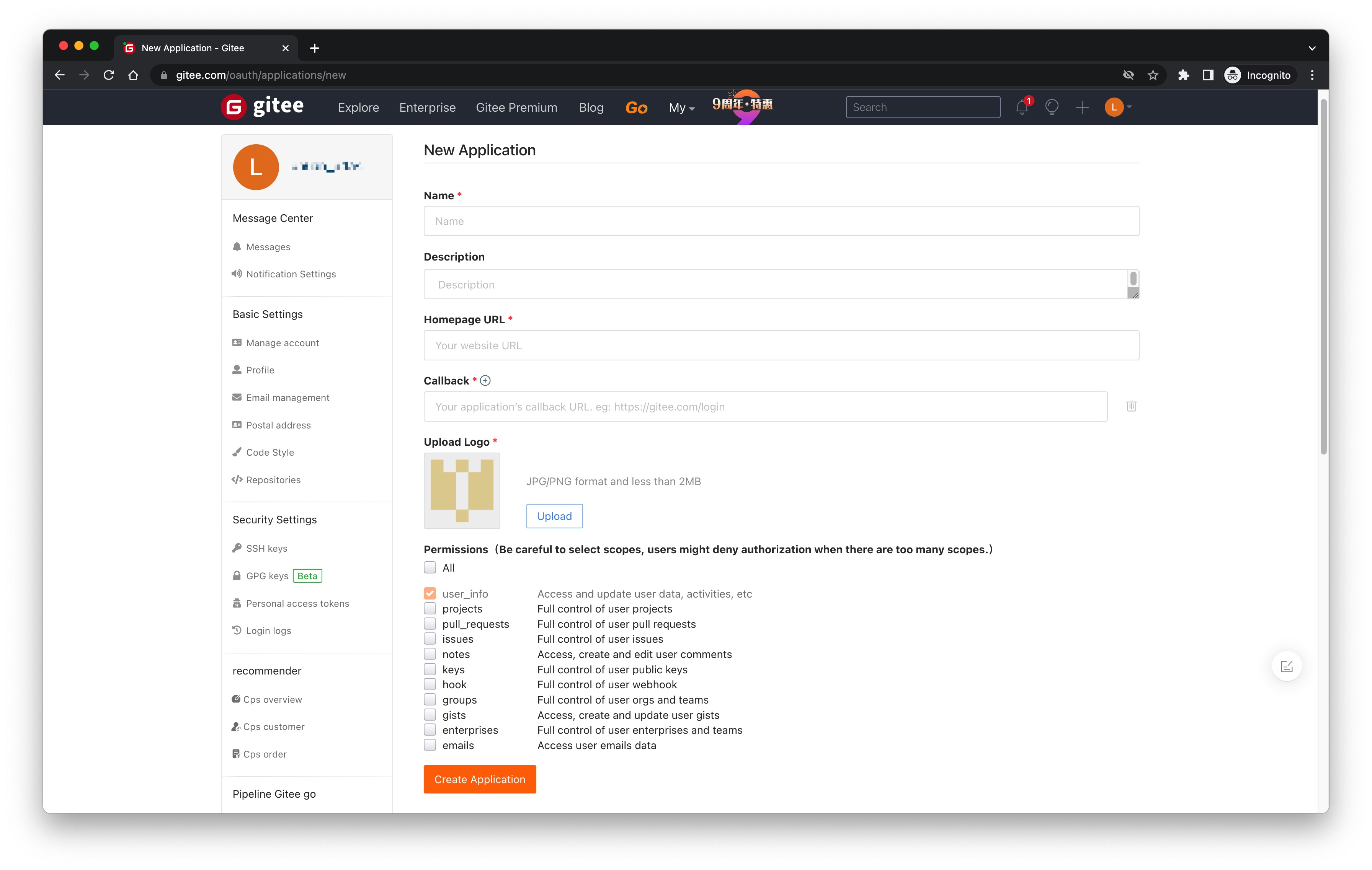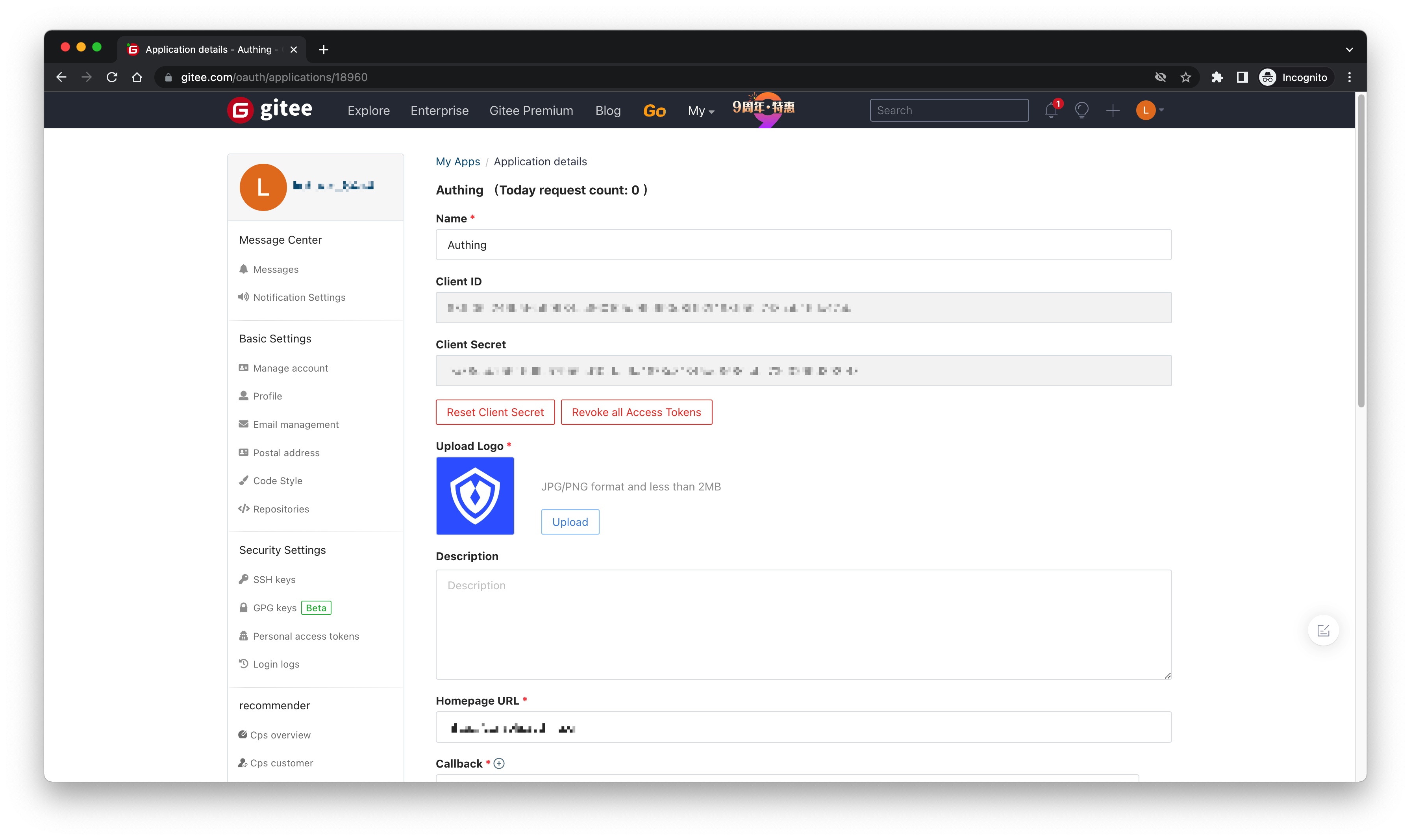 | Client ID | The Gitee application ID obtained in the previous step. |