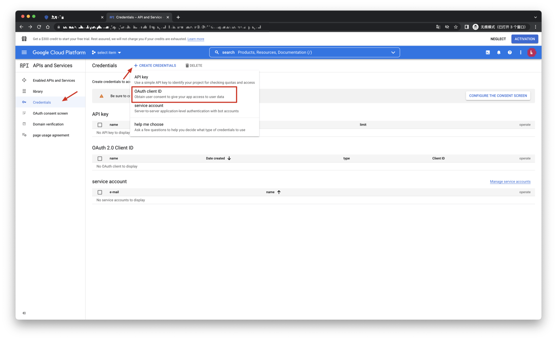 - On the Credentials page, click Create credentials, then select OAuth client ID.