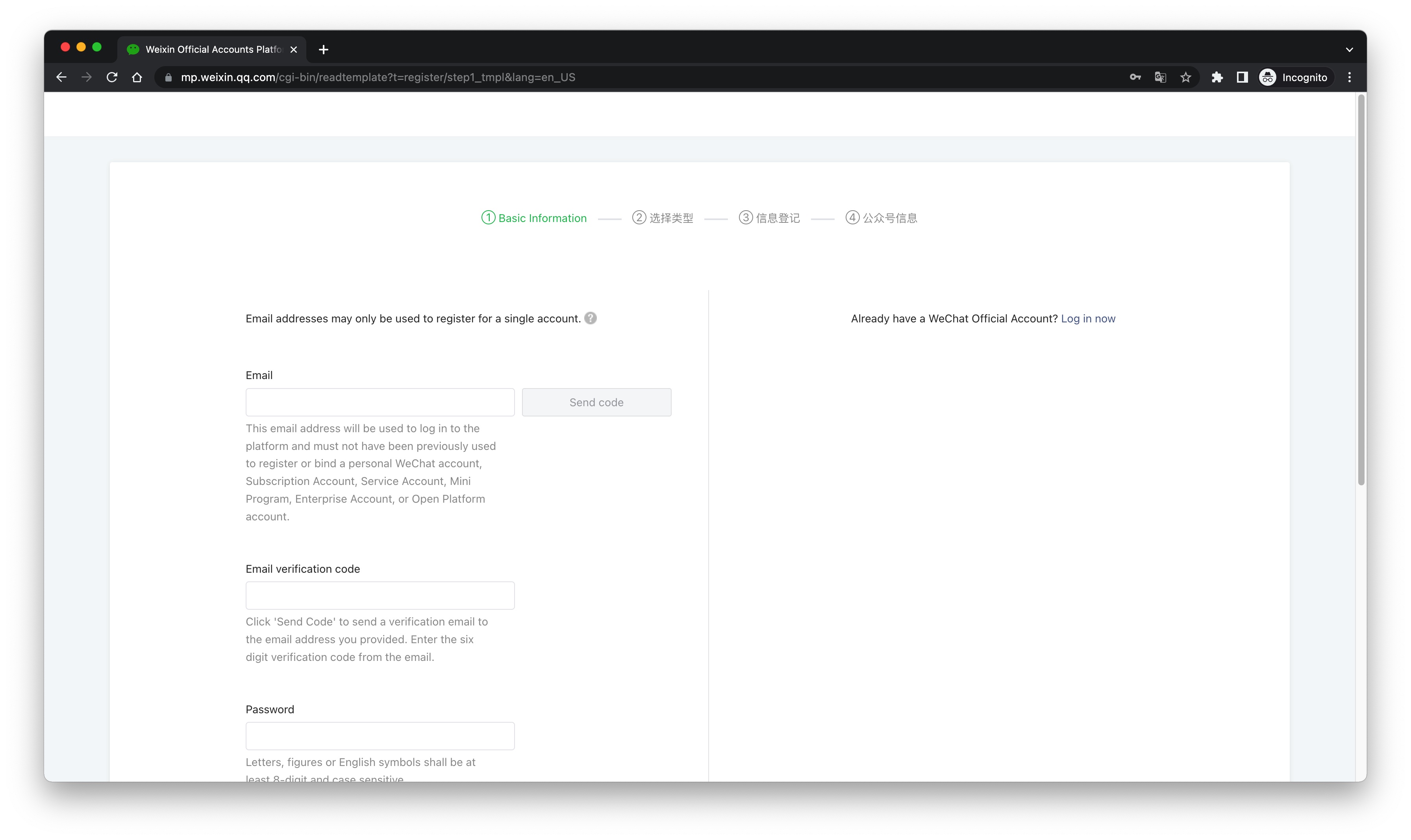 ¶ Step 1: Create a WeChat service account on the WeChat public platform