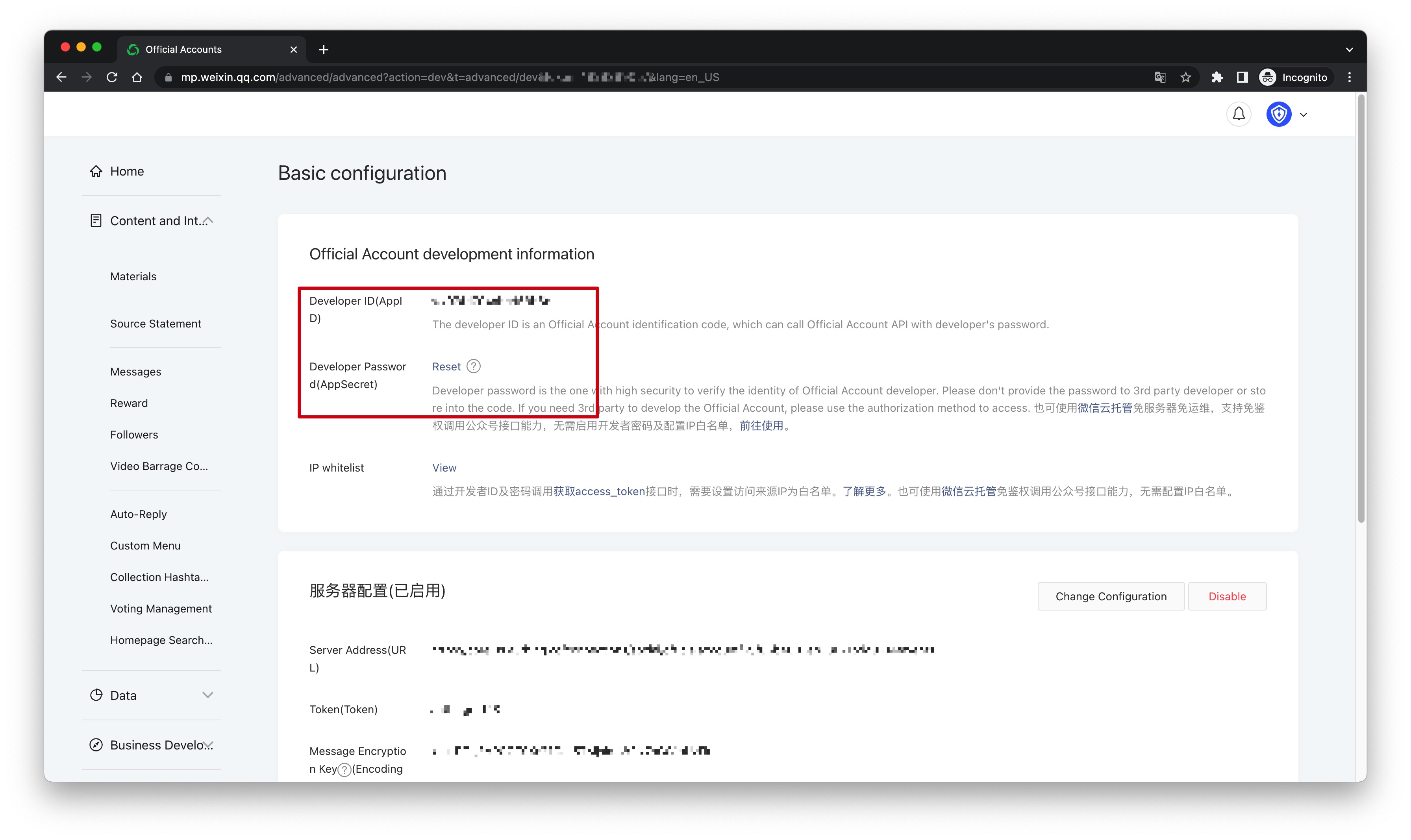 After the creation is complete, you need to record the AppID and AppSecret of the application, which will be used later.
