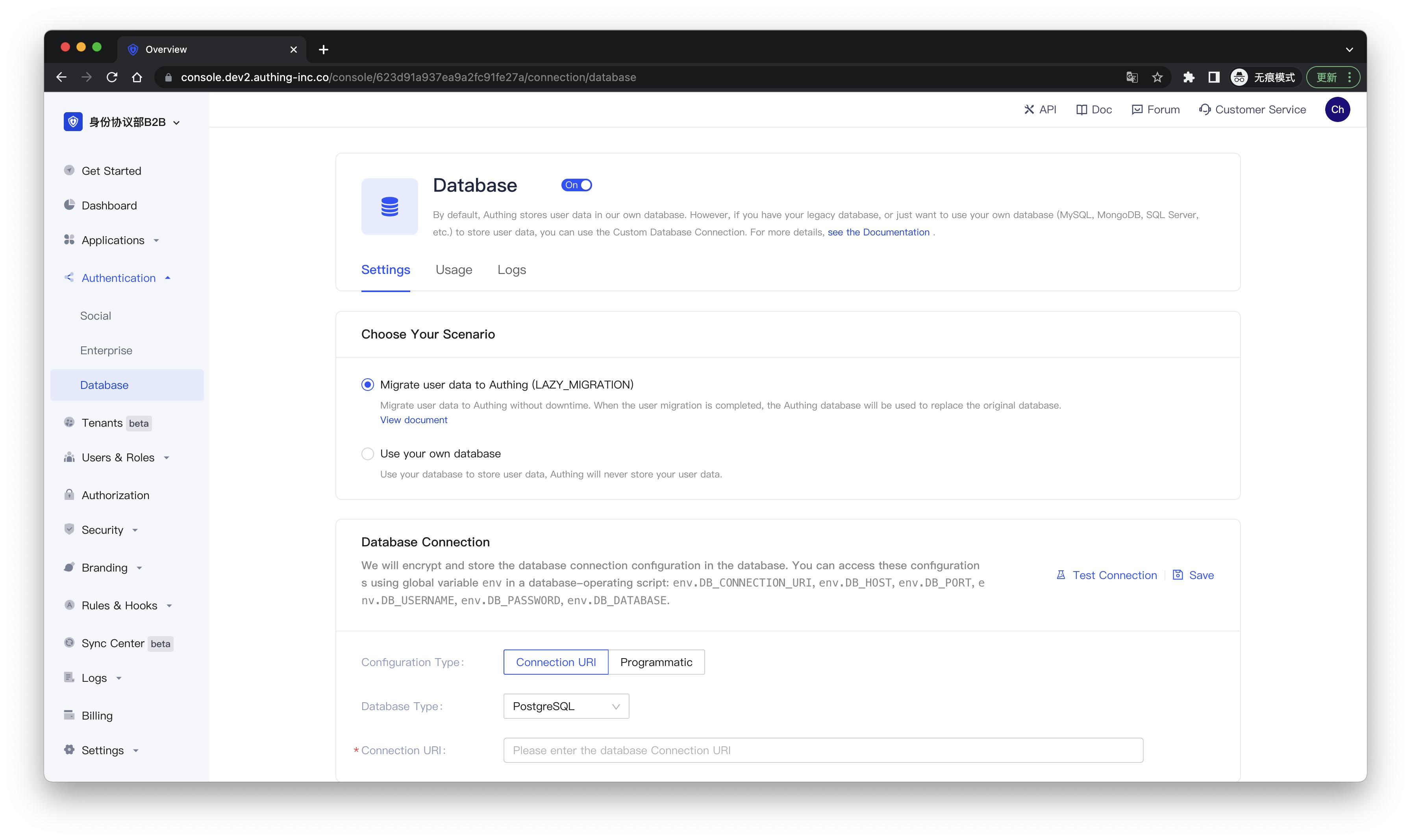 - Only use customized databases to store user information: You can use your own database to store user information. In this mode, Authing won't store any user information. However you need to deploy scripts for user management to make the system work normally.