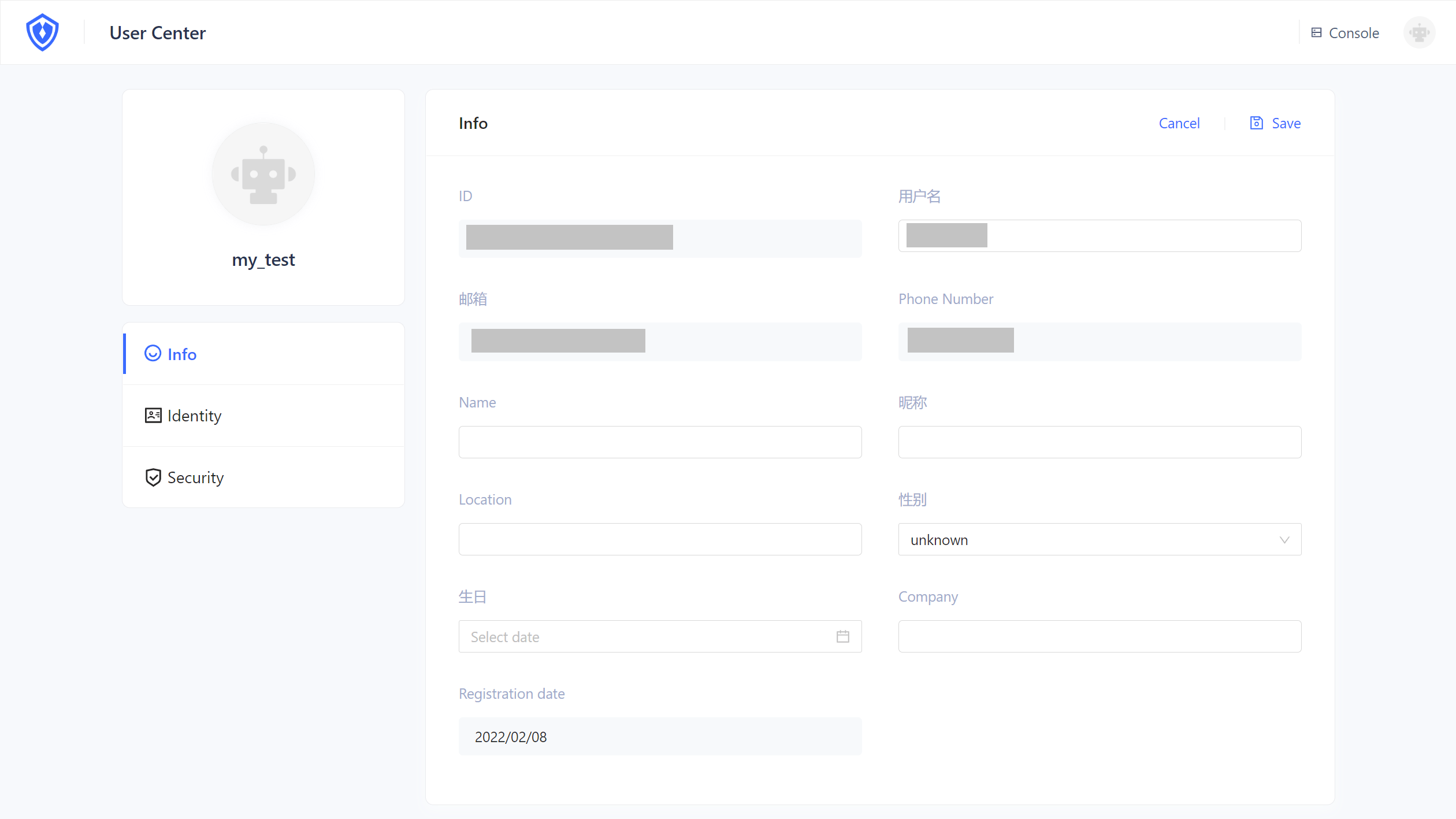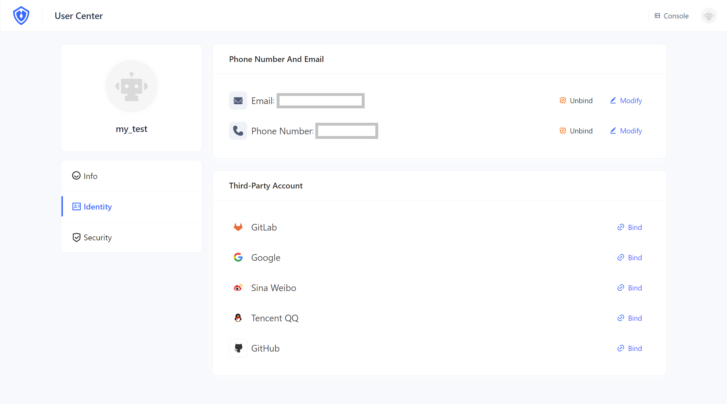 With the help of the hosted login page and personal center, users can complete personal information management by themselves.