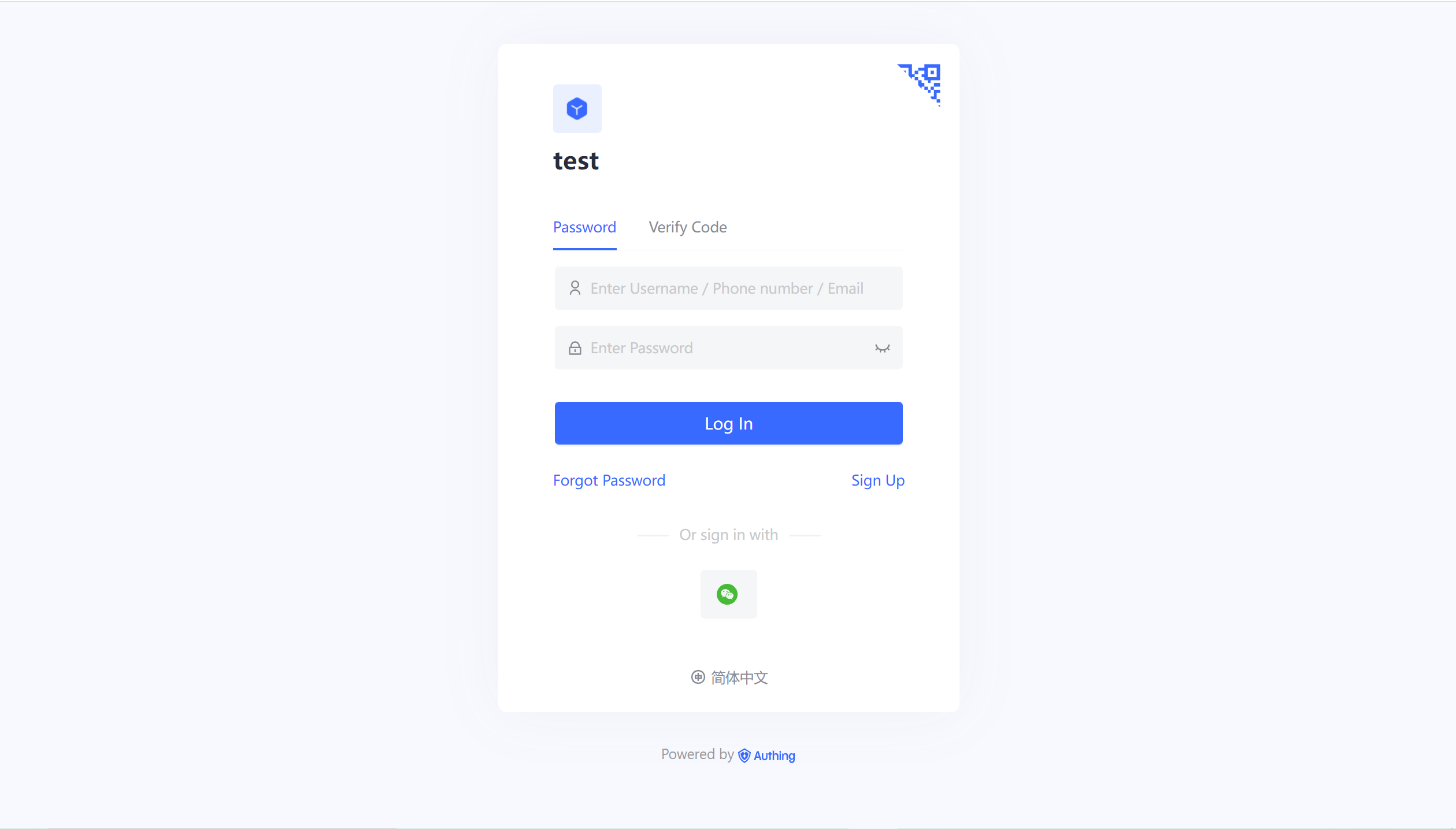 Authing provides developers with a built-in, comprehensive, beautiful, and highly configurable login form. You can feel it by clicking here (opens new window) (we will call this login form as Guard in the following paragraphs), the address is https://< YOUR_DOMAIN>.authing.cn/: