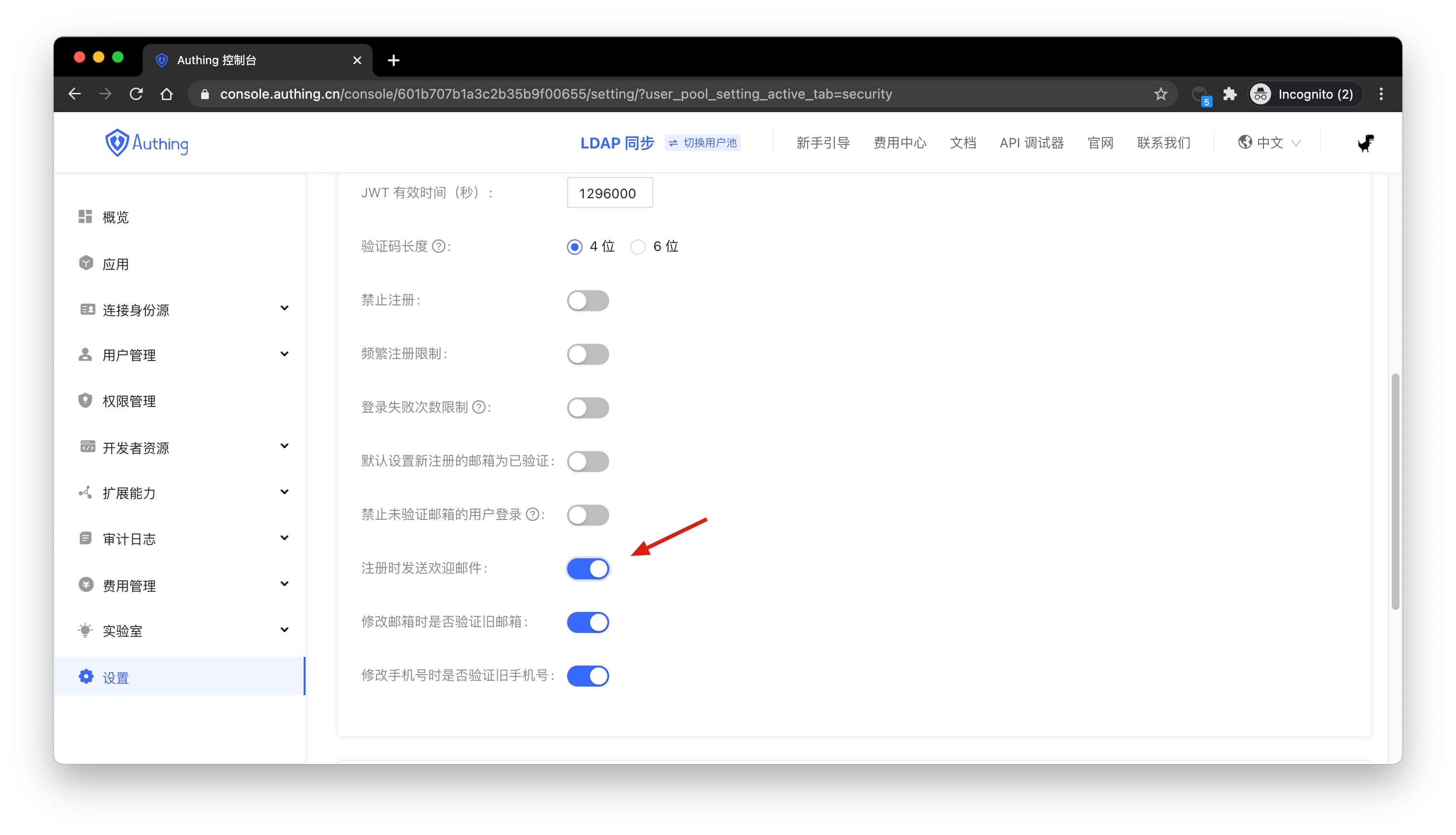 When you close send welcome emails when registering on the console, there will be no welcome emails.