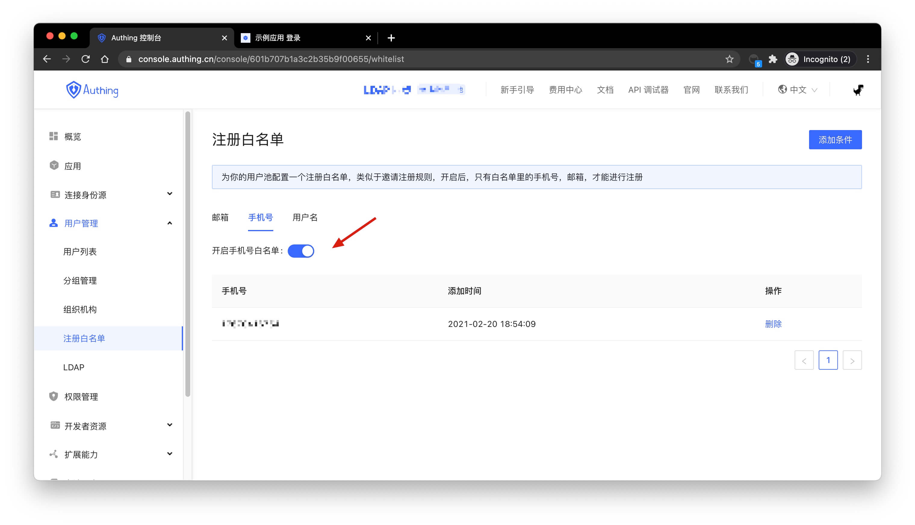 You can open the white list of email, mobile phone number, and user name in the console: user management -> registration whitelist. After opening, only the mobile phone number, email address, and user name in the whitelist can be registered (It will not affect administrators manually create accounts).