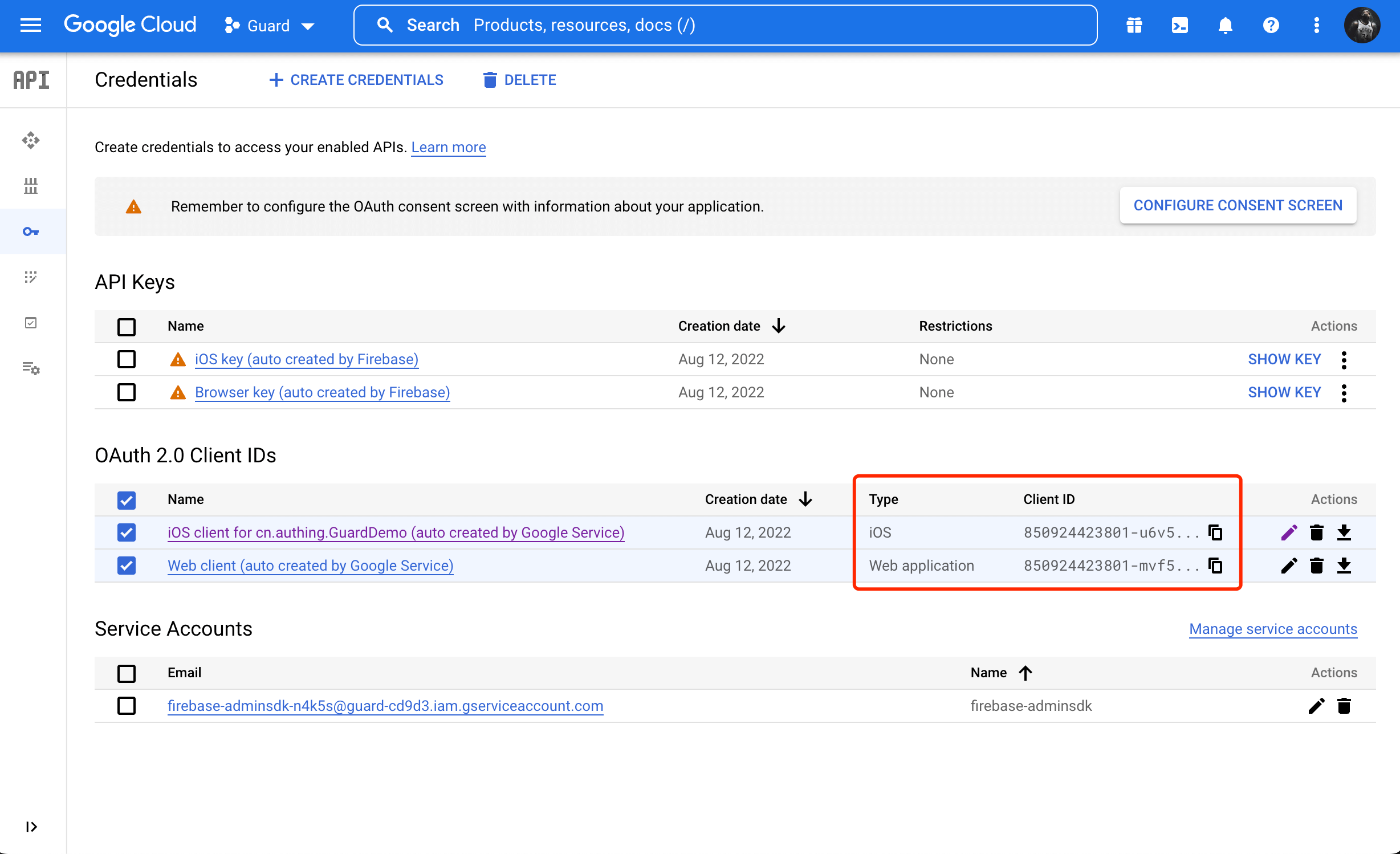 Configure in Google API Console Credentials Console (opens new window) and Authing Management Console (opens new window).