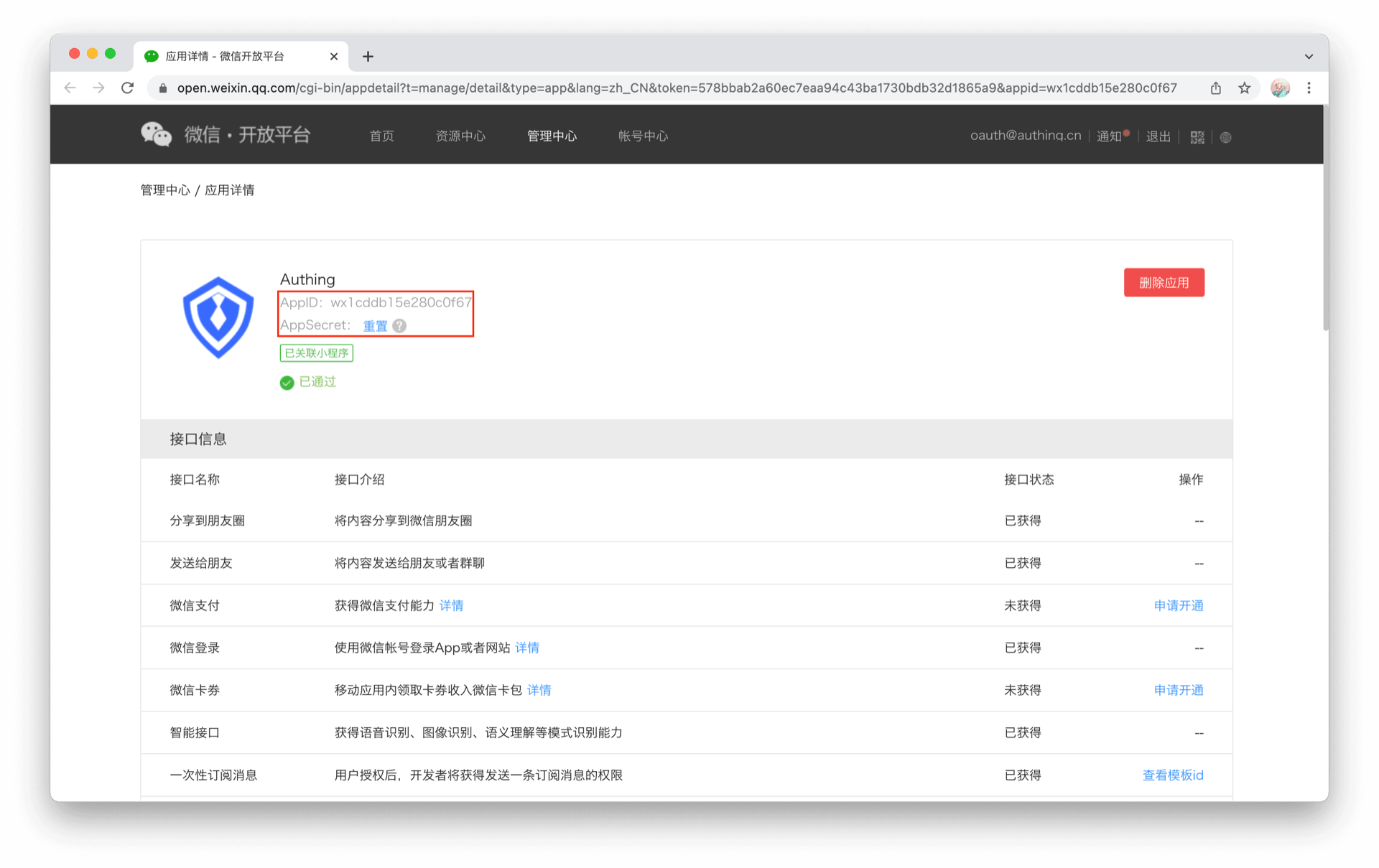 Note: Developer must be verified before using any service on wechat open platform. Wechat doesn't support personal usage, so developer must be part of some organization, commercial or governmental. And It costs 300 RMB to become a verified developer.