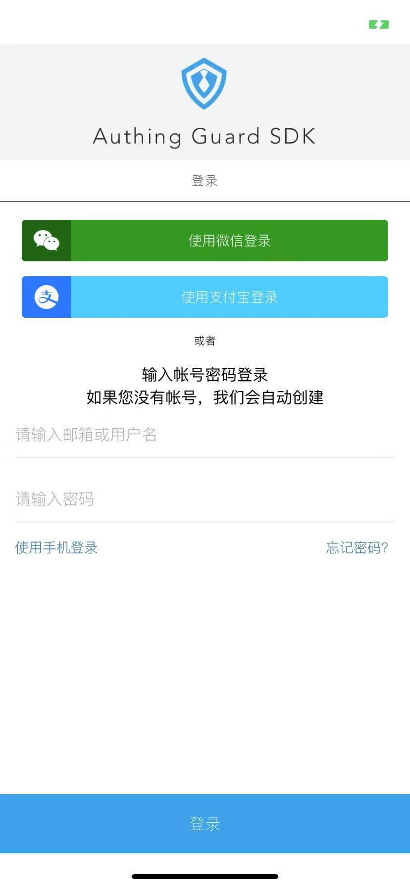 Authing supports React Native mobile development mobile, making developers quickly access Alipay, WeChat, etc. App login, and code development support mailbox password, username password, mobile verification code login.
