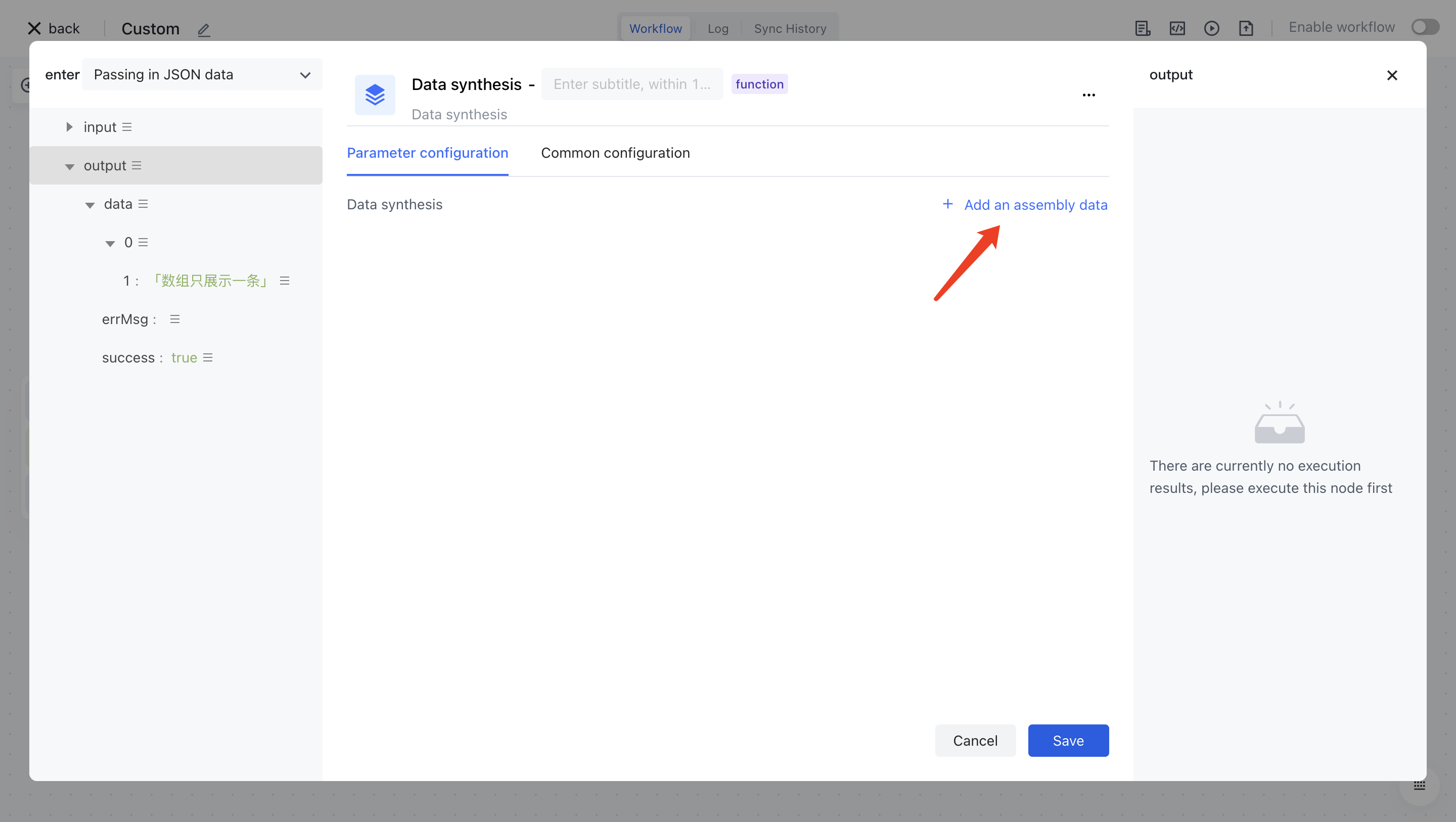 The "data synthesis" node is mainly used to assemble multiple variable data, in order to combine these variables into one output result for subsequent node processing.