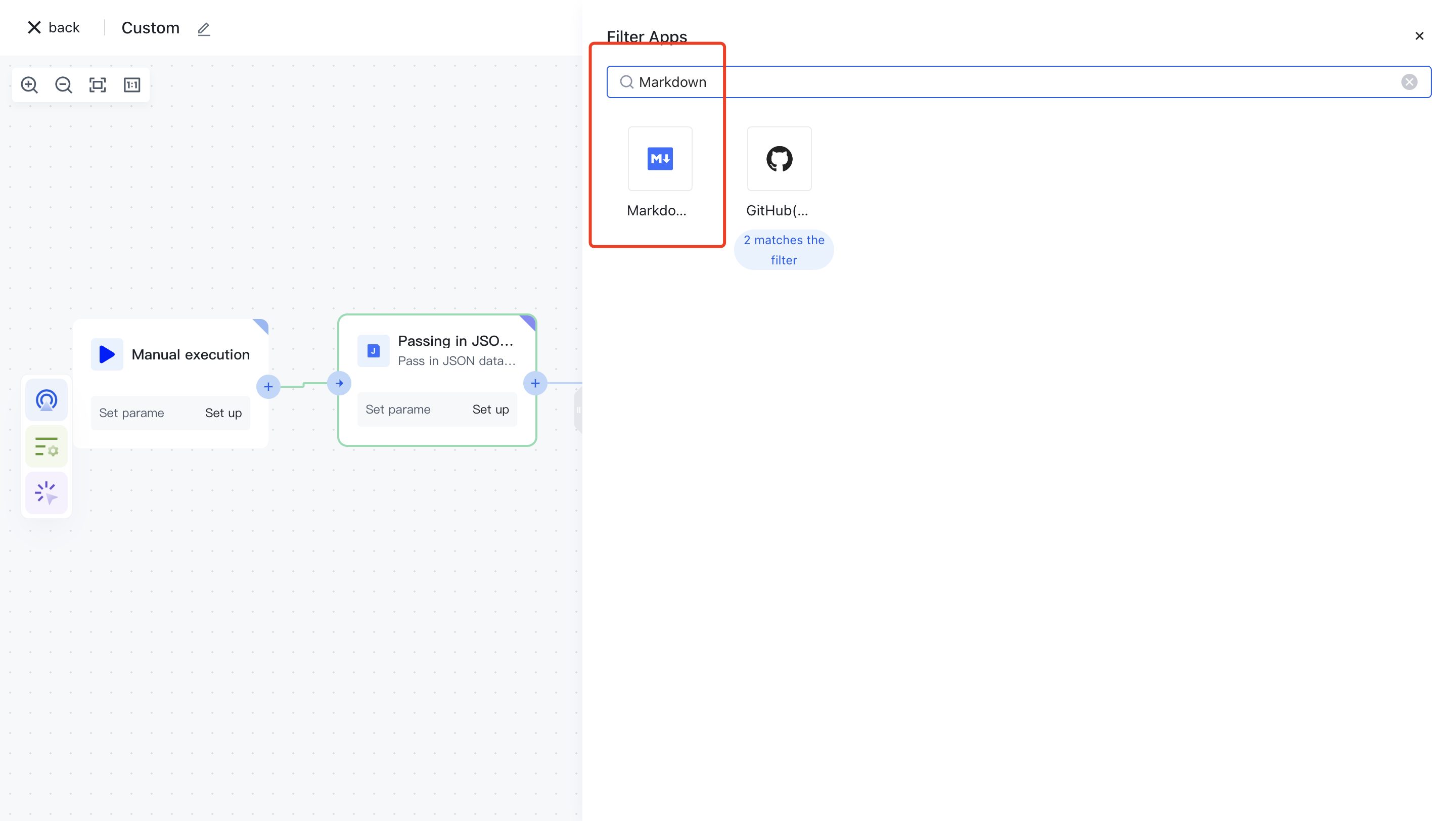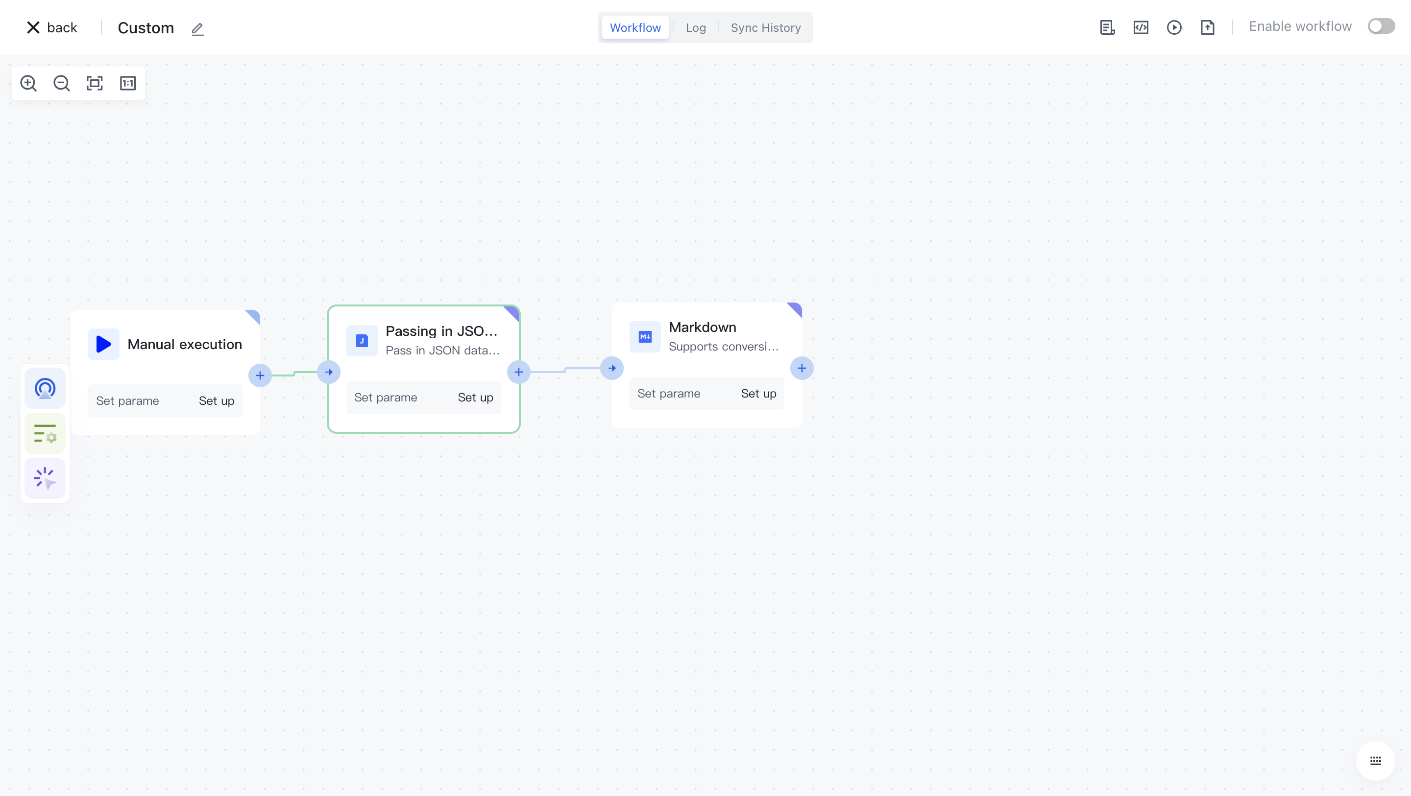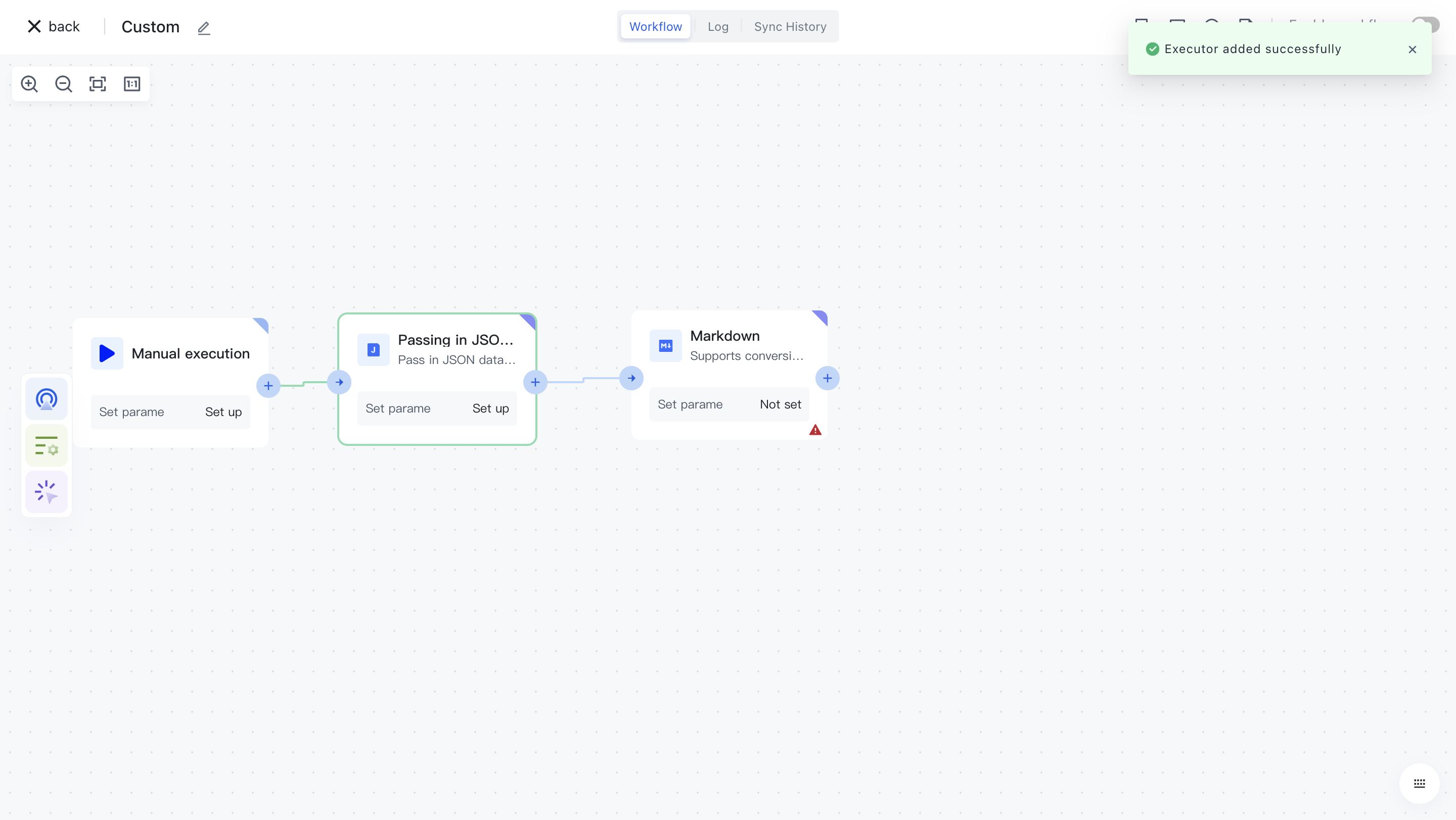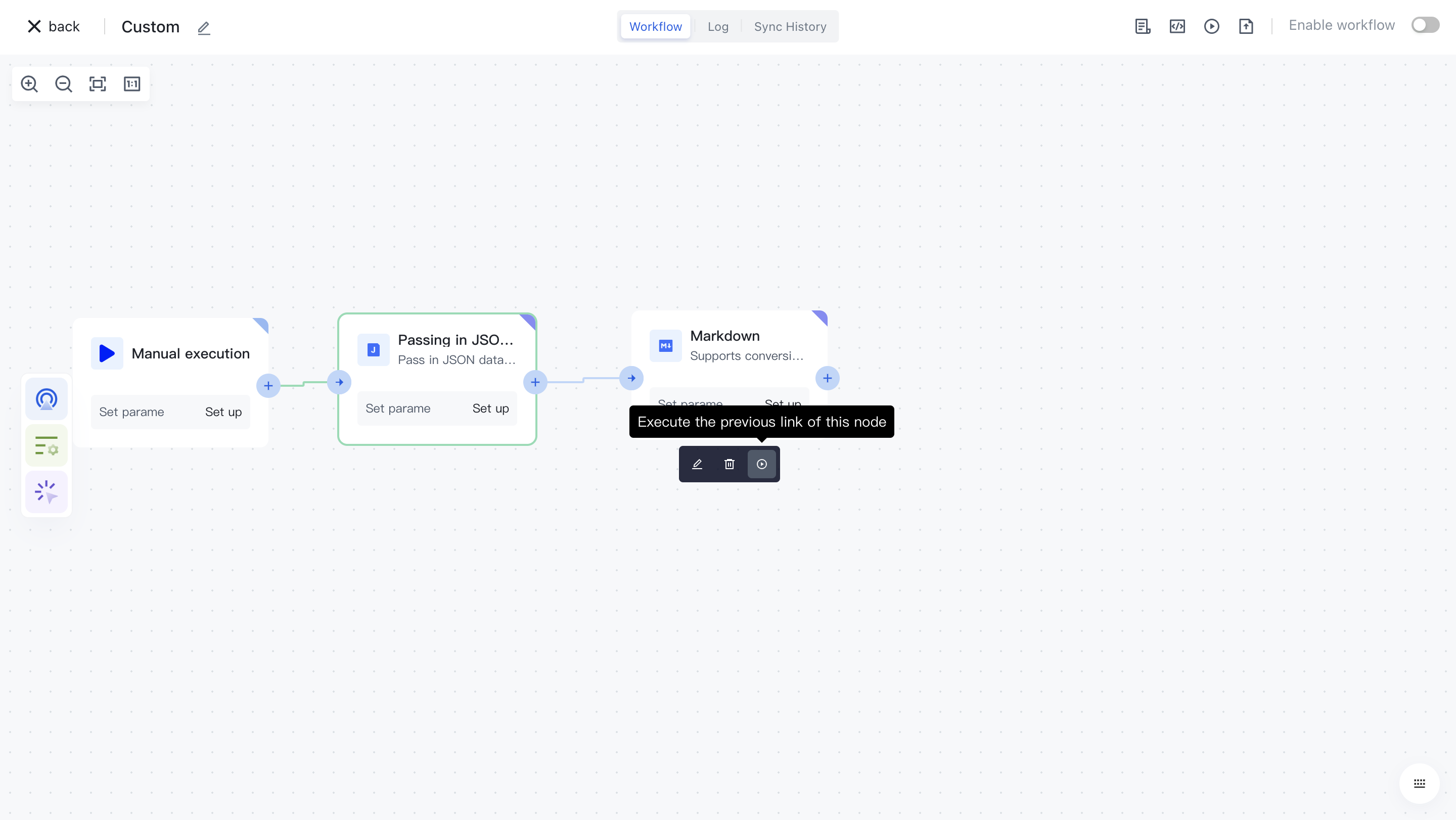 Clicking on a node will automatically add it to the workflow.