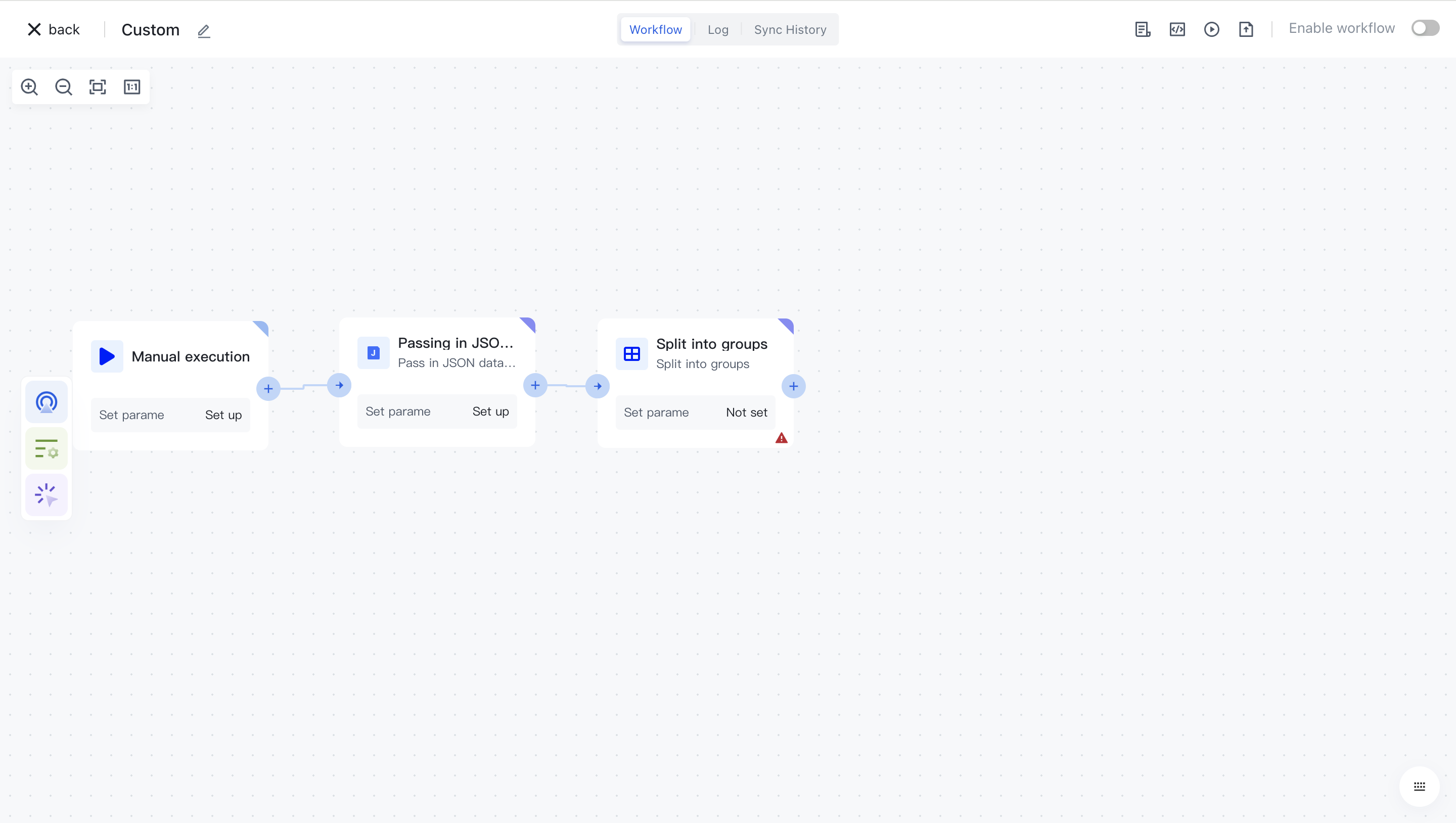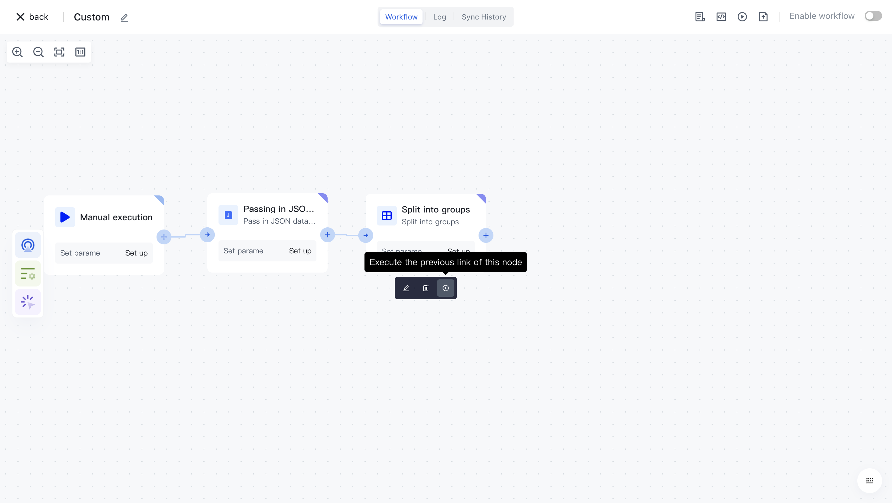 Clicking on a node will automatically add it to the workflow.