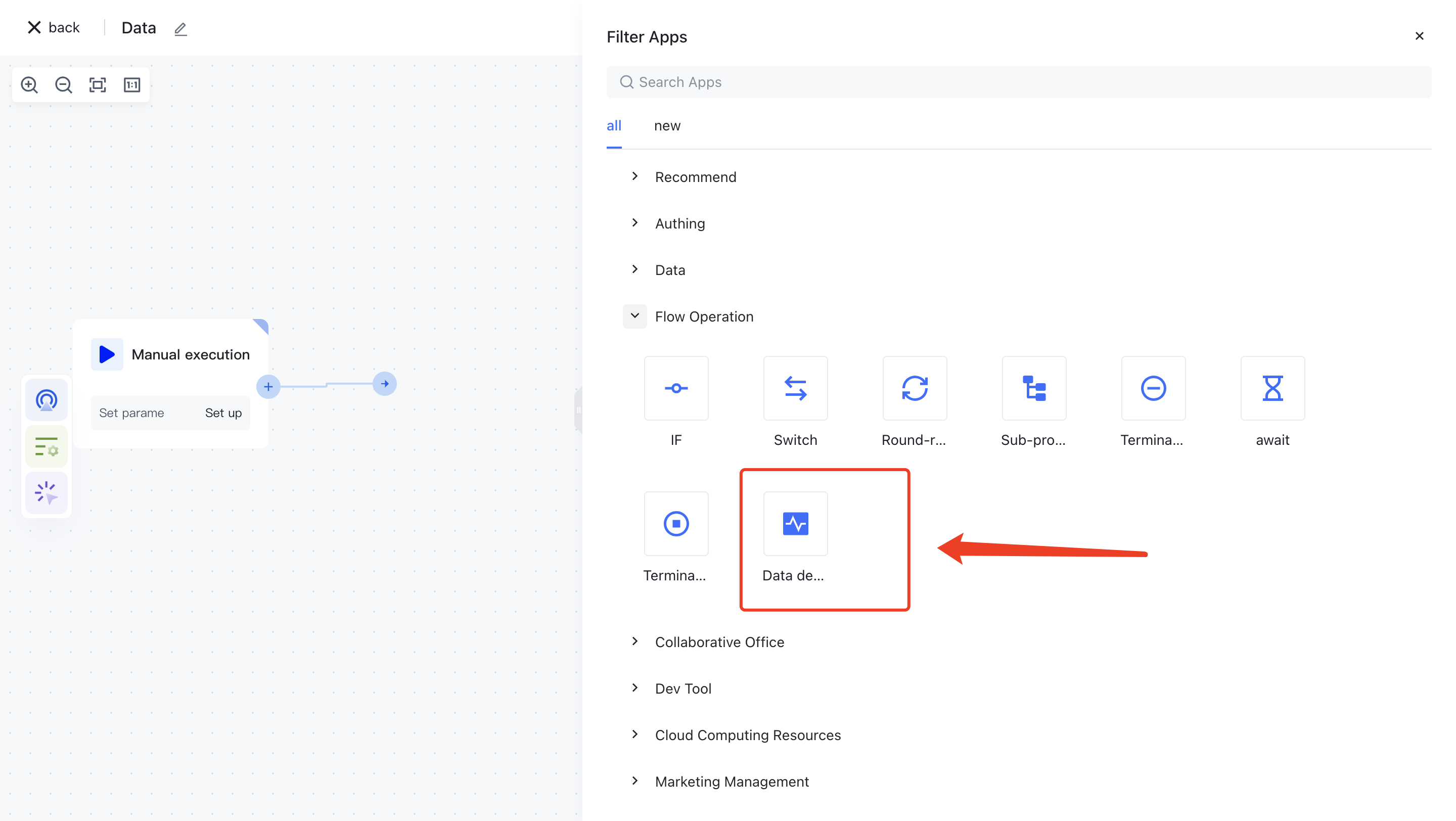 The "Data Detection" node is mainly used to detect whether the data meets certain conditions, and to determine whether the workflow process will continue to be executed later.