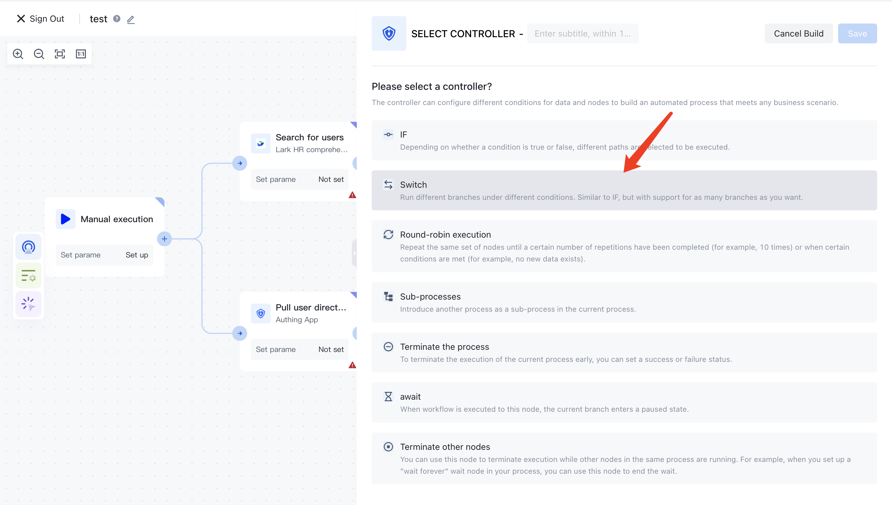 The following will introduce the creation methods of process control nodes such as loops, IF, SWITCH, function calls, waits, and concurrent requests. For detailed instructions on the use of each process control node, please refer to the "Process Control Node" section.