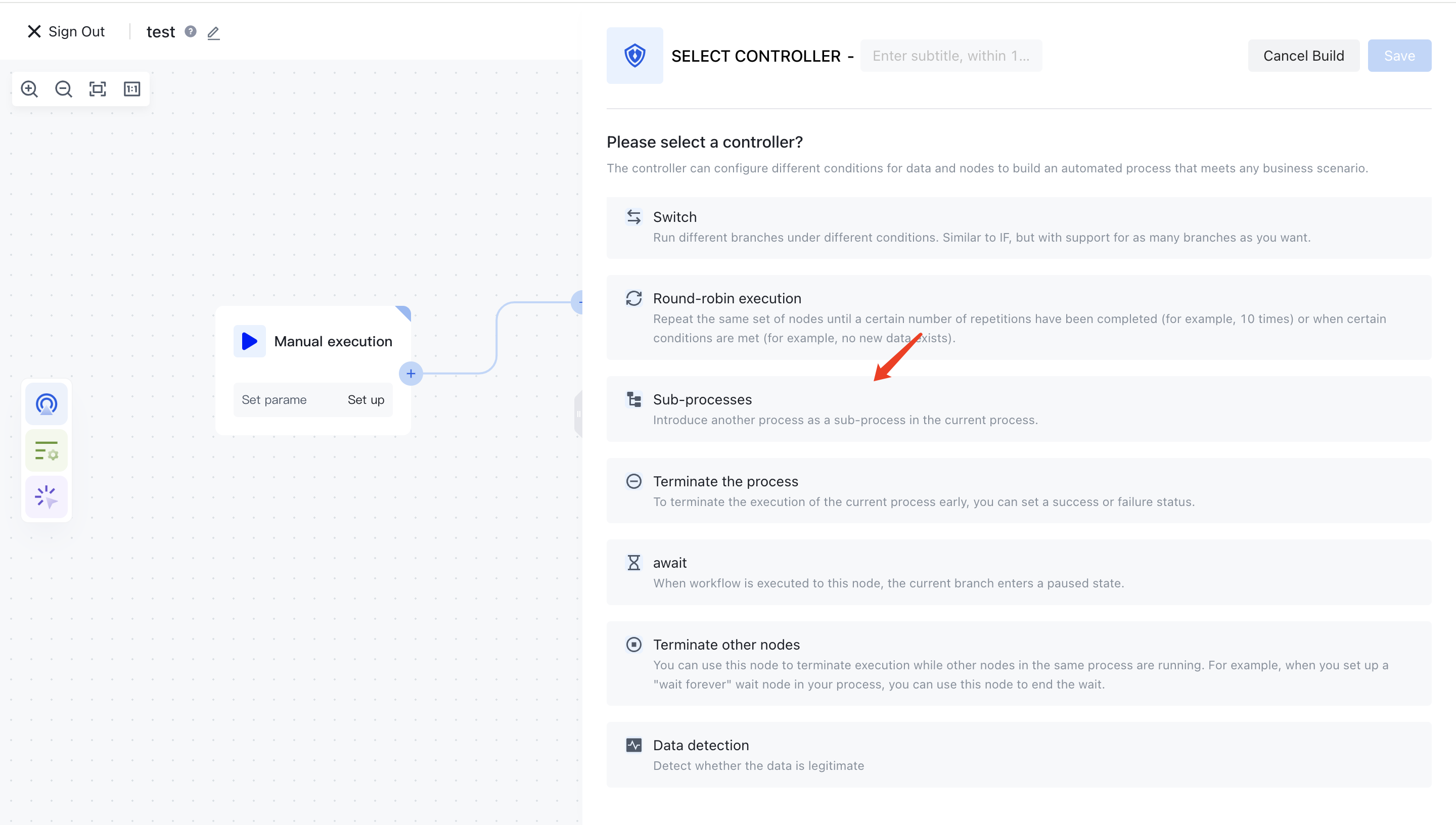You can see sub process nodes in the controller classification: