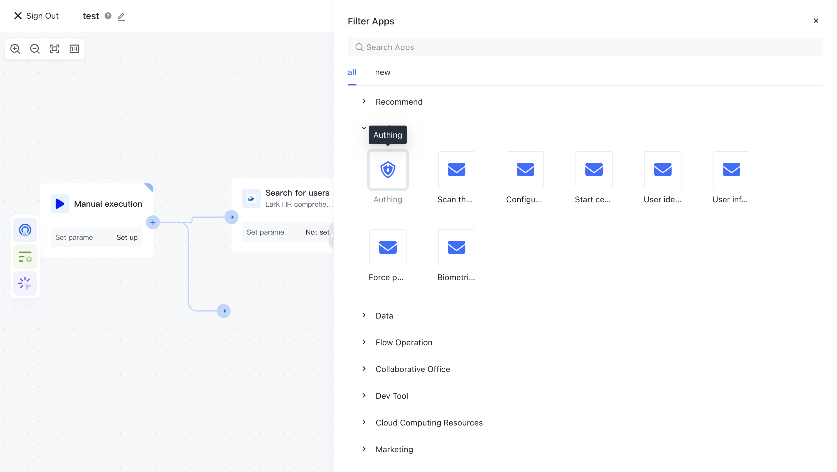 After dragging out the connection, an application selection box will pop up, allowing you to select any application you want to add: