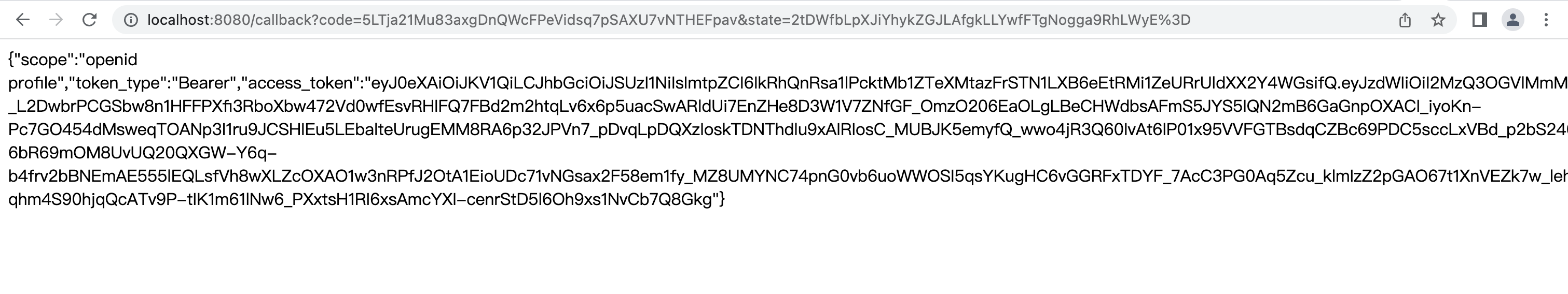 登录成功后,会自动回调到我们之前的回调地址(即我们在上面所写的 CallbackController),Authing 会返回以下信息。