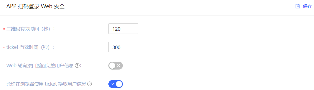 | Web 轮询接口返回完整用户信息 | 默认不返回。由于查询二维码状态接口是没有权限校验的,这意味着直接在此接口返回用户信息(包含登录凭证 token)是存在安全隐患的,所以我们推荐开发者遵循最佳实践:查询二维码状态接口只返回用户昵称和头像,使用 ticket 换取用户信息。 |