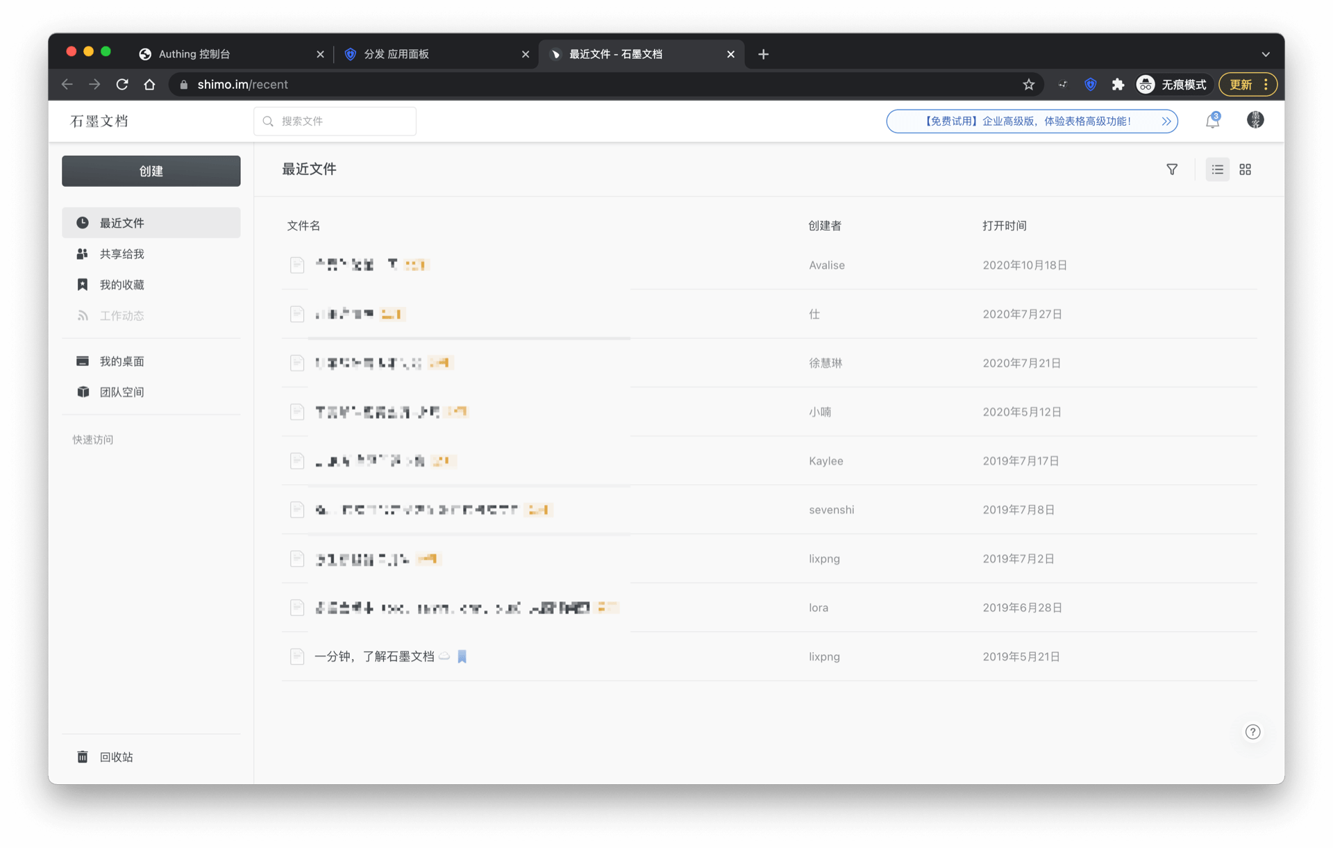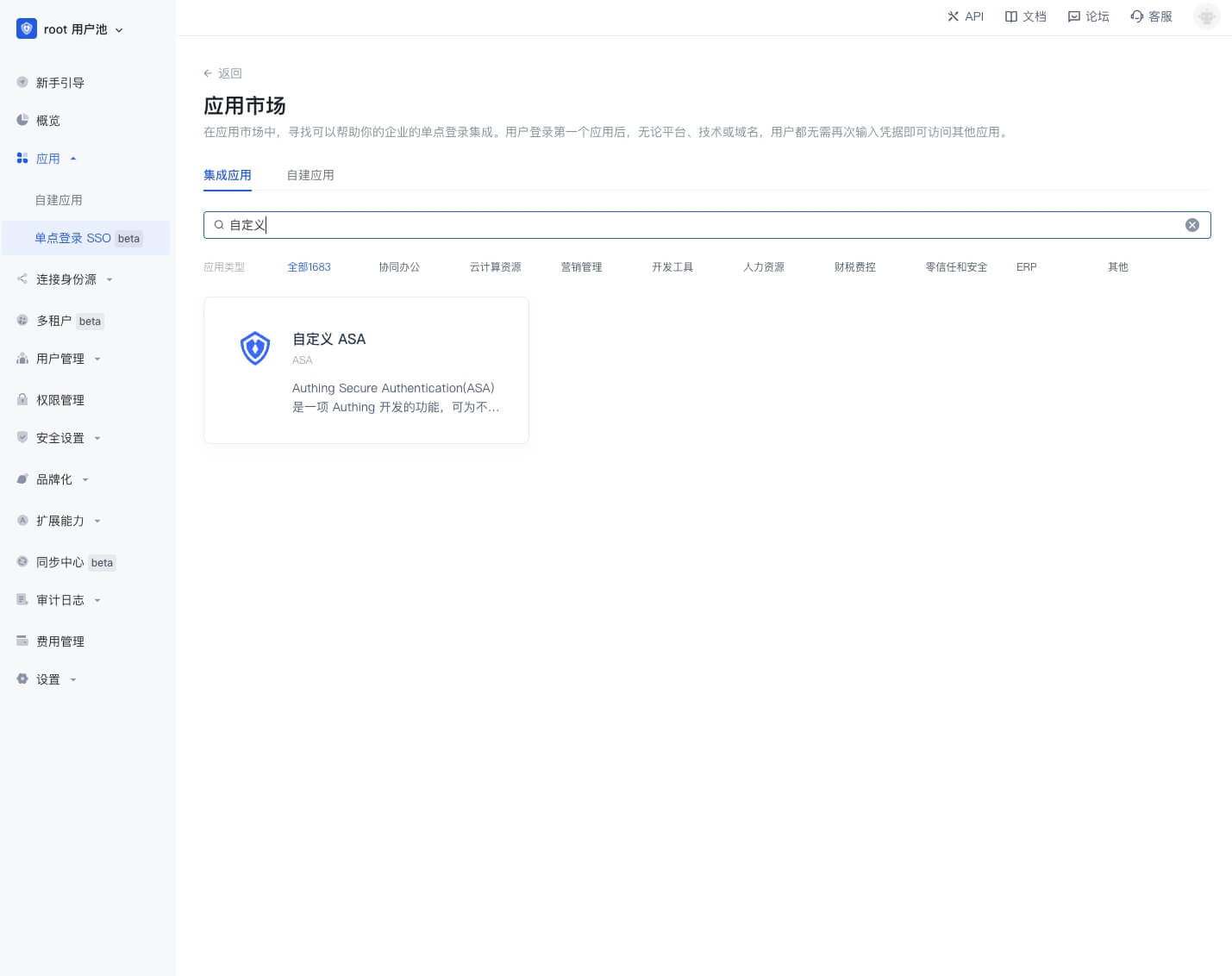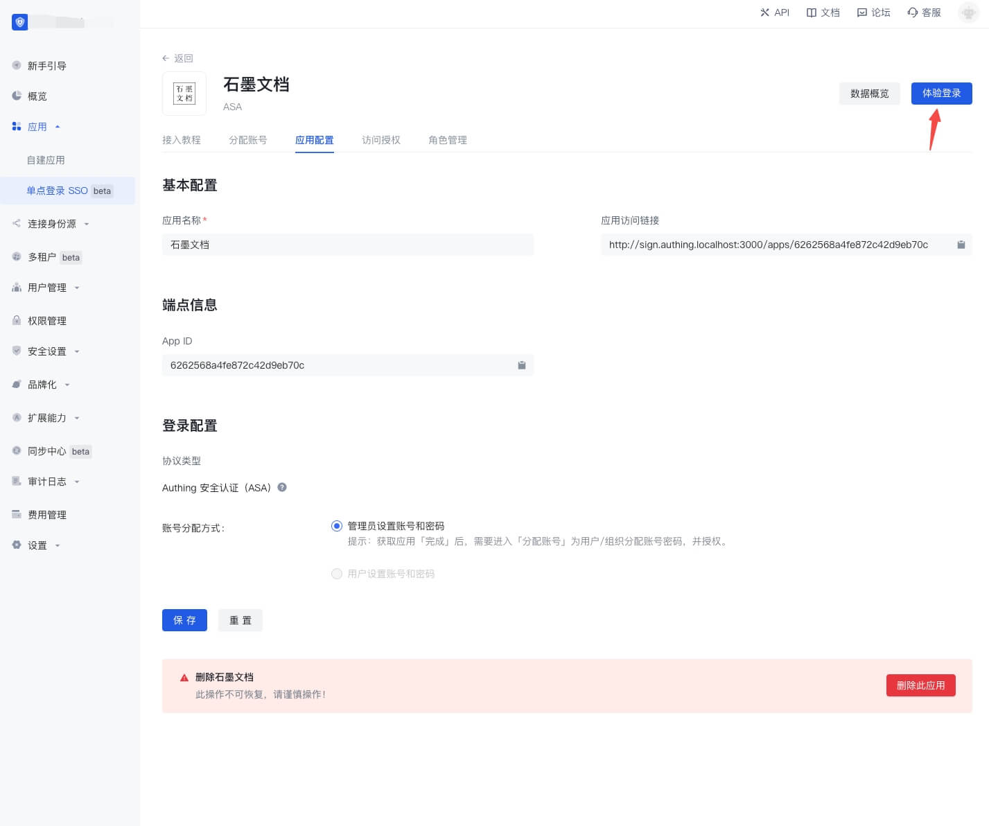 在 Authing 应用市场找一个支持 ASA 的应用,以下我们以「石墨文档」为例进行演示。