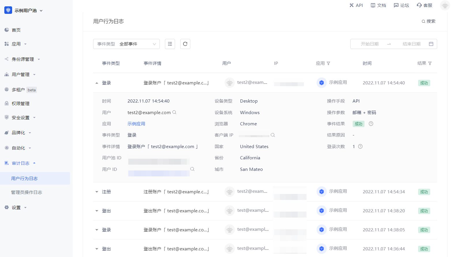 审计日志->用户行为日志