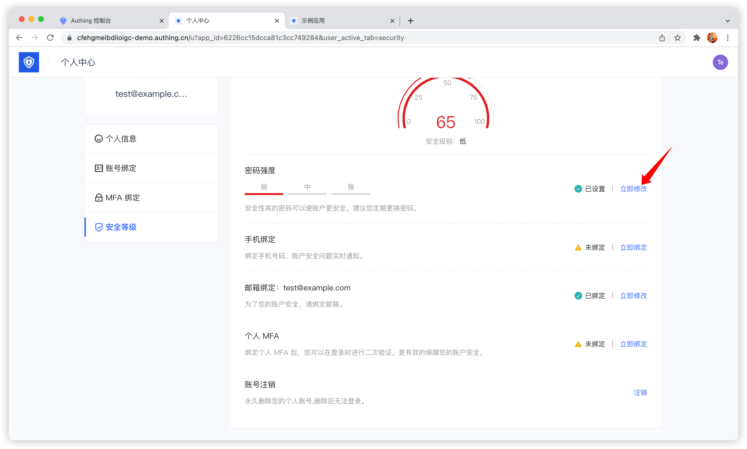 - 修改密码:可以通过现有密码重置密码。