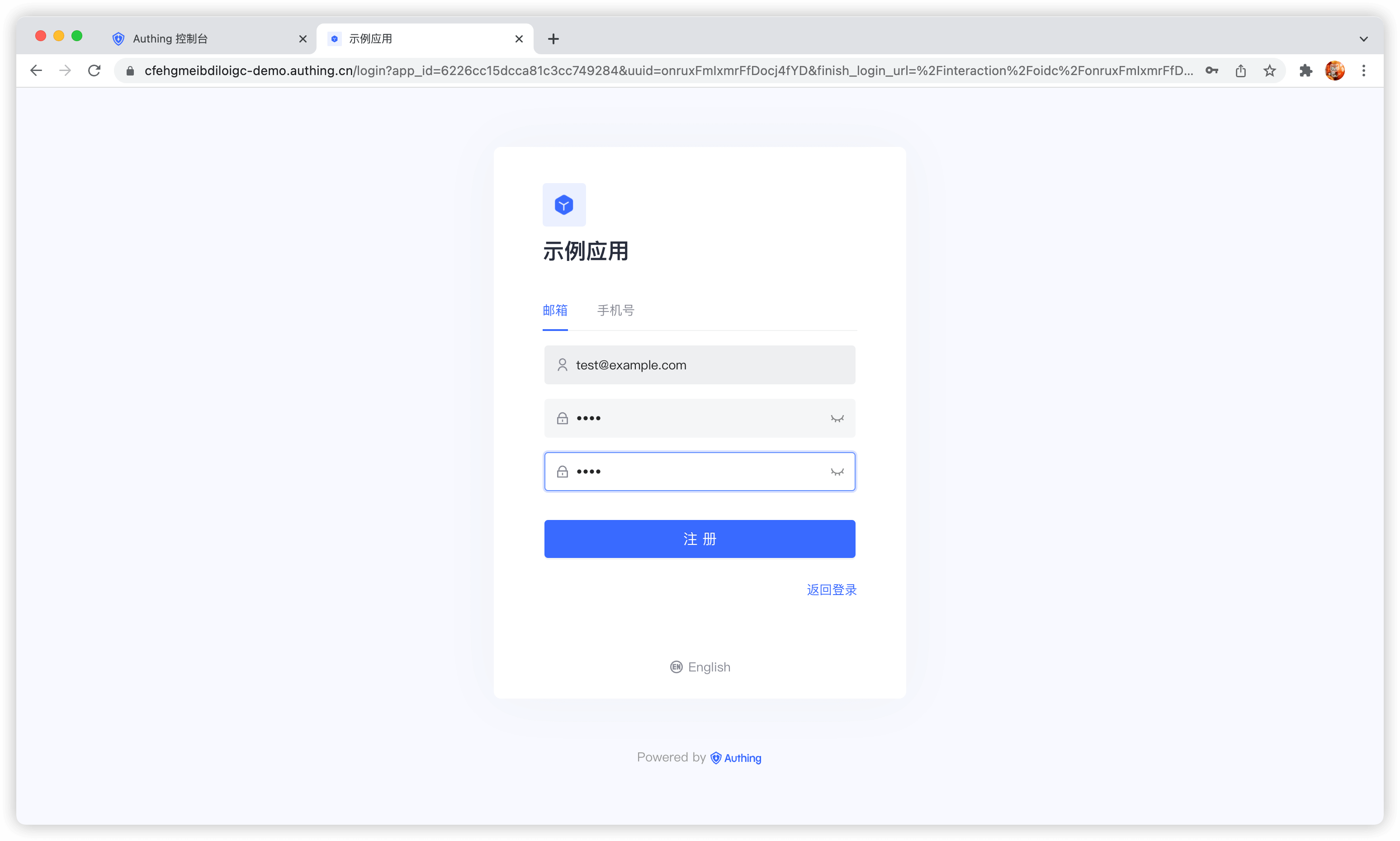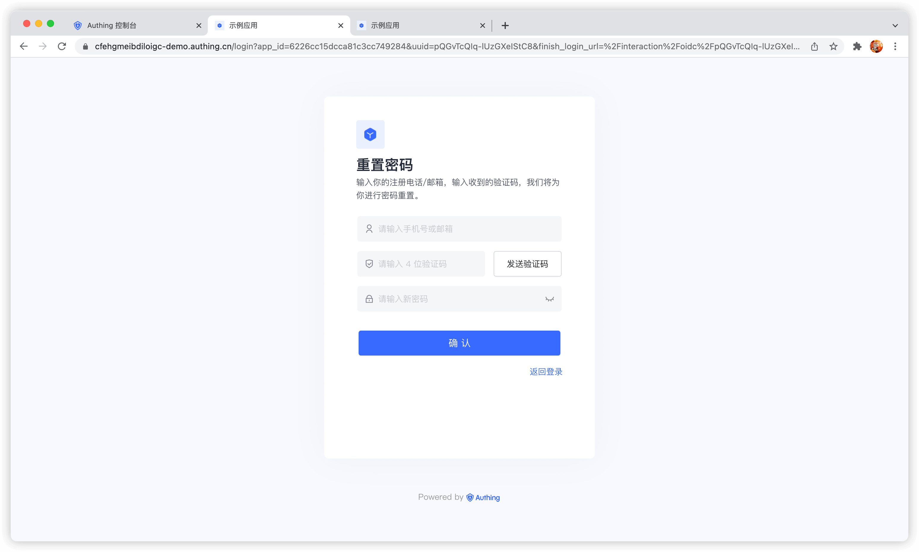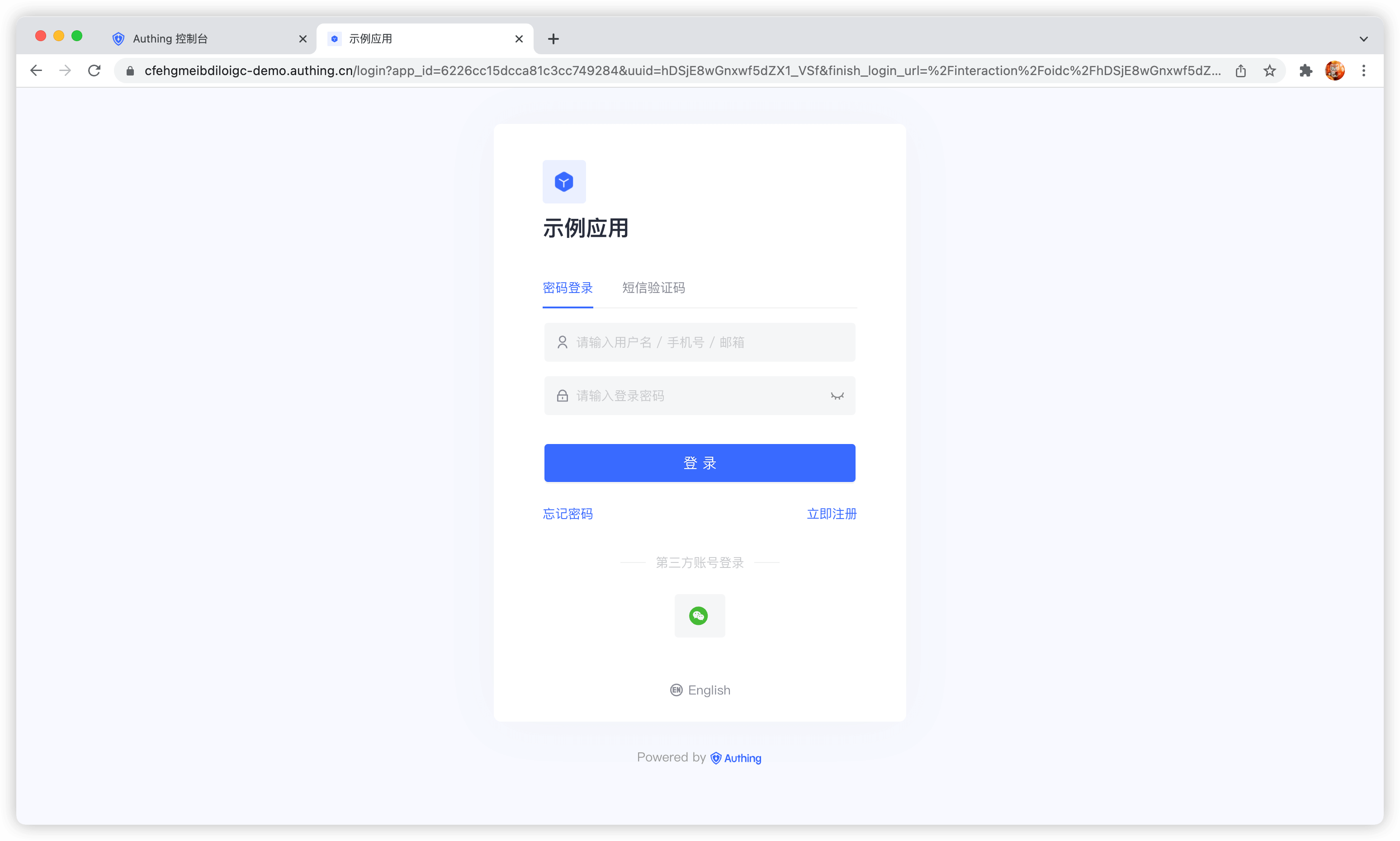 内嵌登录组件和在线托管登录页在样式和交互上基本一致,不同点在于在线托管登录页由 Authing 完全托管运维,与你的应用之间完全独立,而内嵌登录组件则可以嵌入到你的应用中。