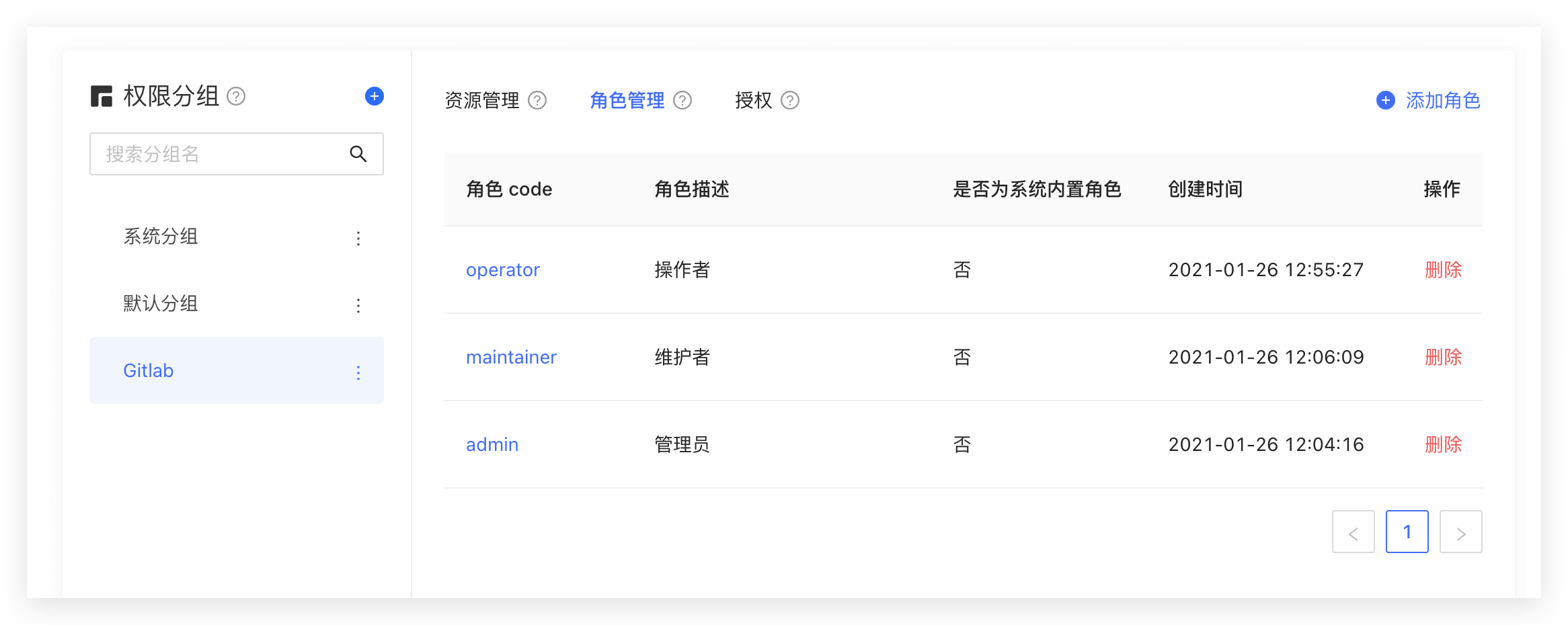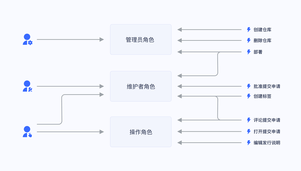 我们授予某个用户「Admin」这个角色,他就具备了「创建代码仓库」和「删除代码仓库」这两个权限。