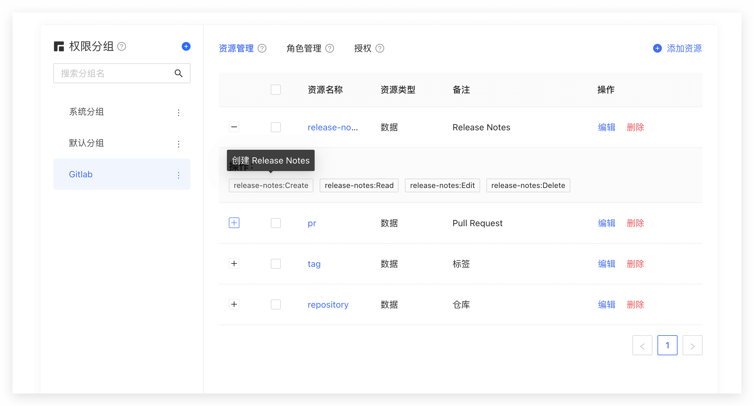 你可以把系统的一些对象抽象为资源,在这些资源上可以定义了一些操作。比如在本文的场景中,Repository、Tag、PR、Release Notes 都是资源,且这些资源都有对应的操作: