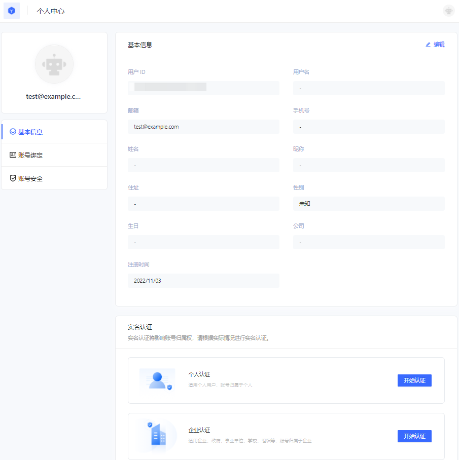 在此,终端用户可以查看和修改自己的个人信息、修改密码、绑定邮箱手机号、绑定 MFA 等。