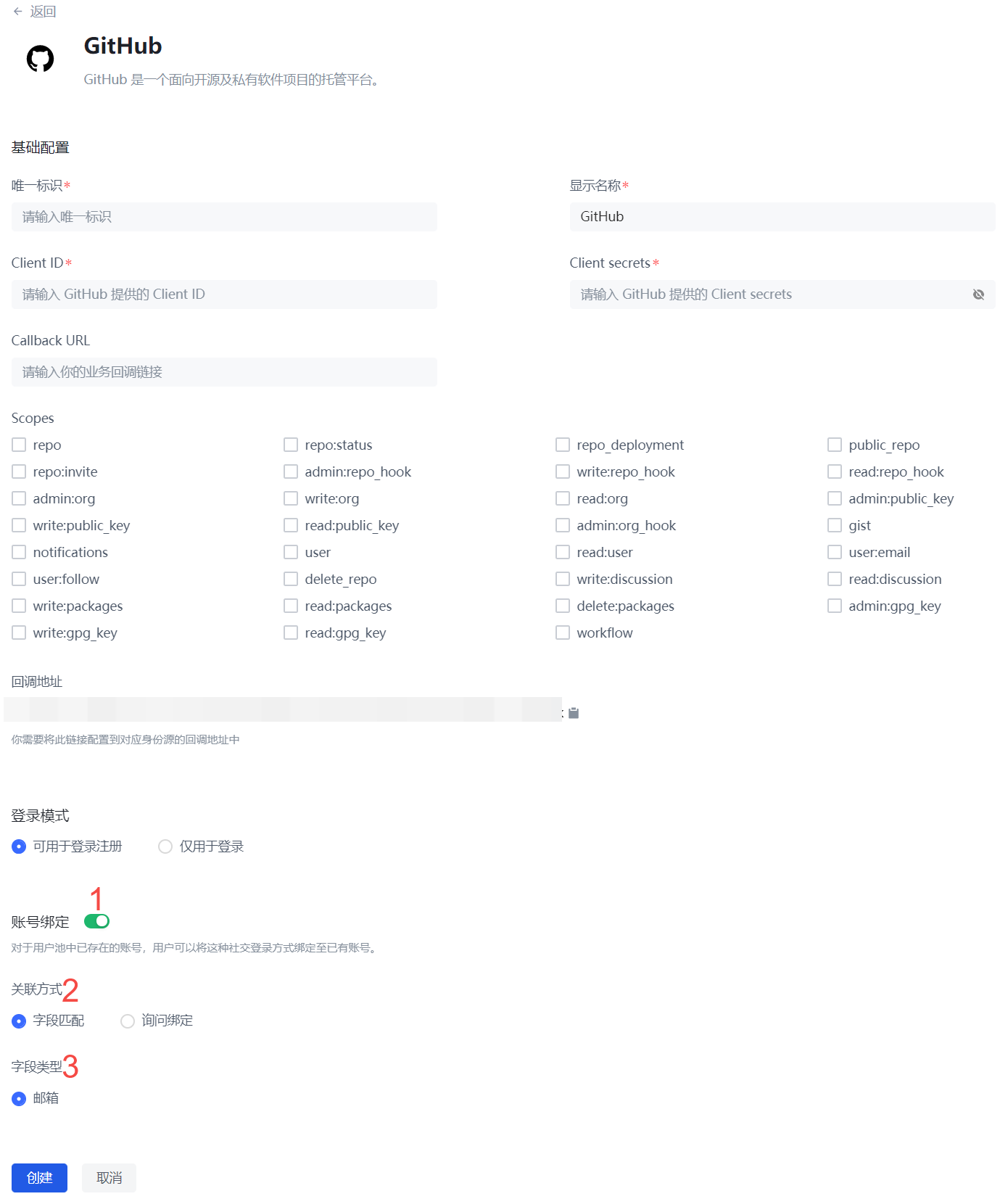 按照上述步骤开启字段匹配后,当你的用户首次通过这个身份源进行登录时,会经历以下路径(以 Github 为例):