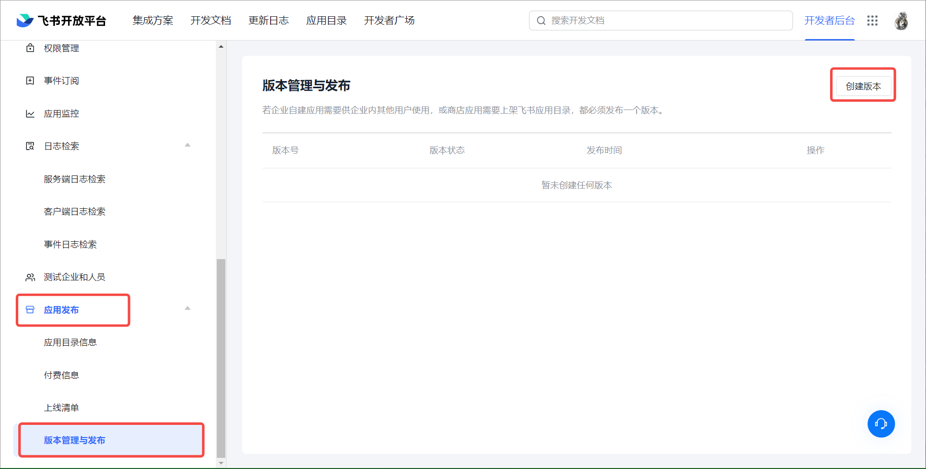 4.1 在飞书开发者后台,选择应用发布,在版本管理与发布中,点击创建版本,将创建好的应用进行发布,