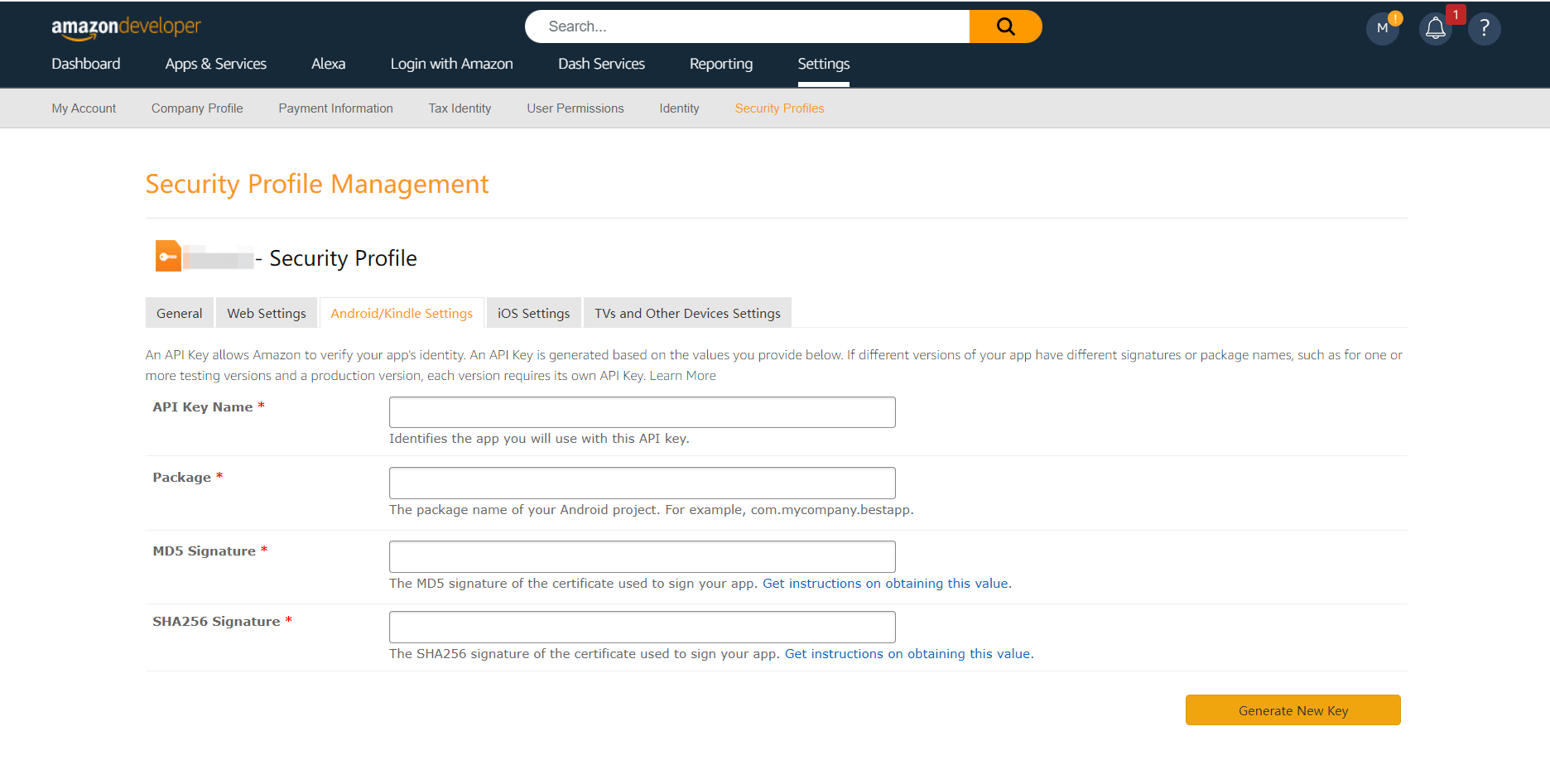 | 安全配置文件 ID | 亚马逊的「安全配置文件 ID」,需要在 亚马逊 开放平台 上获取。 |