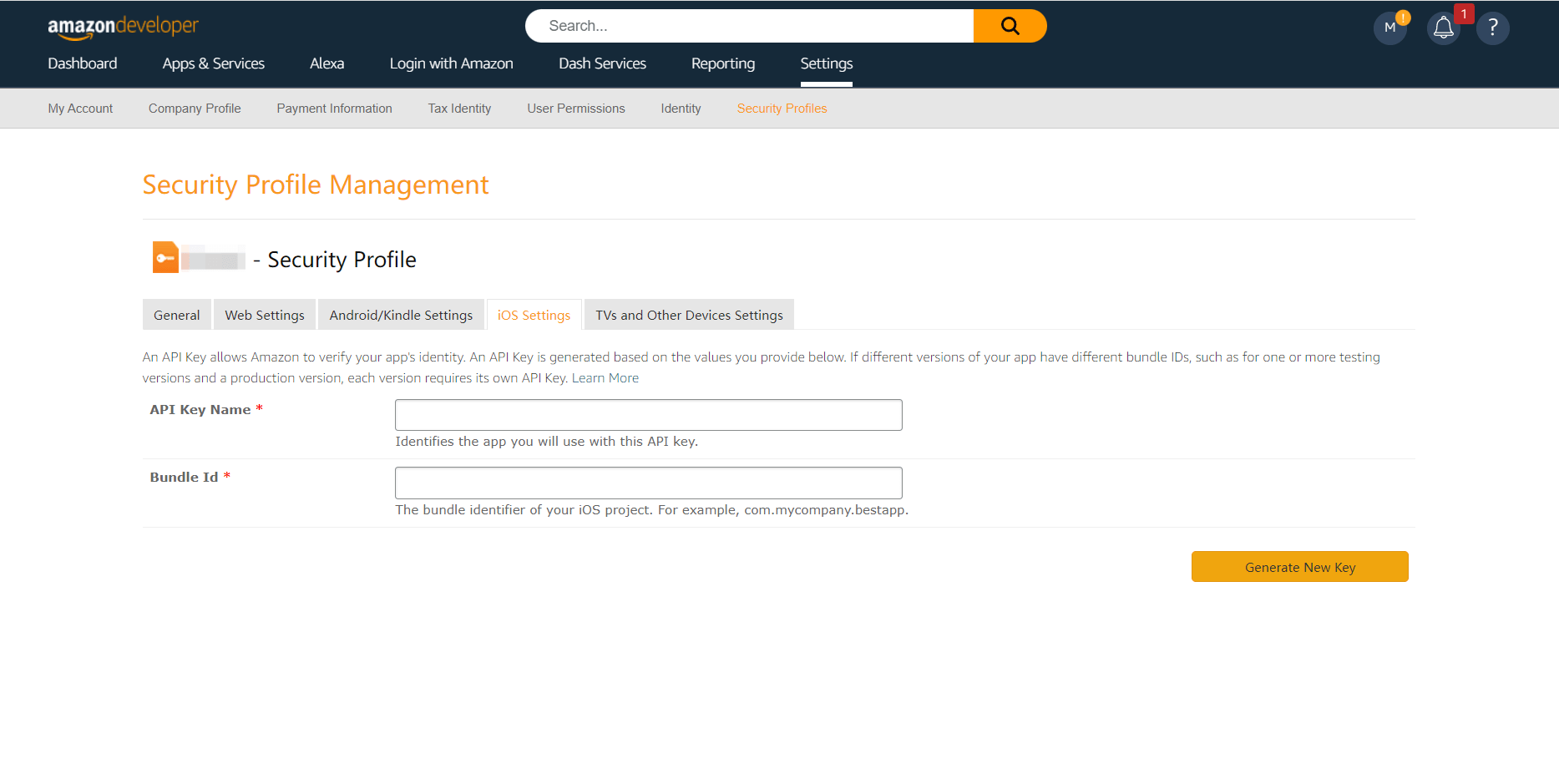 1.1 前往 亚马逊开放平台 (opens new window) 创建安全配置文件。