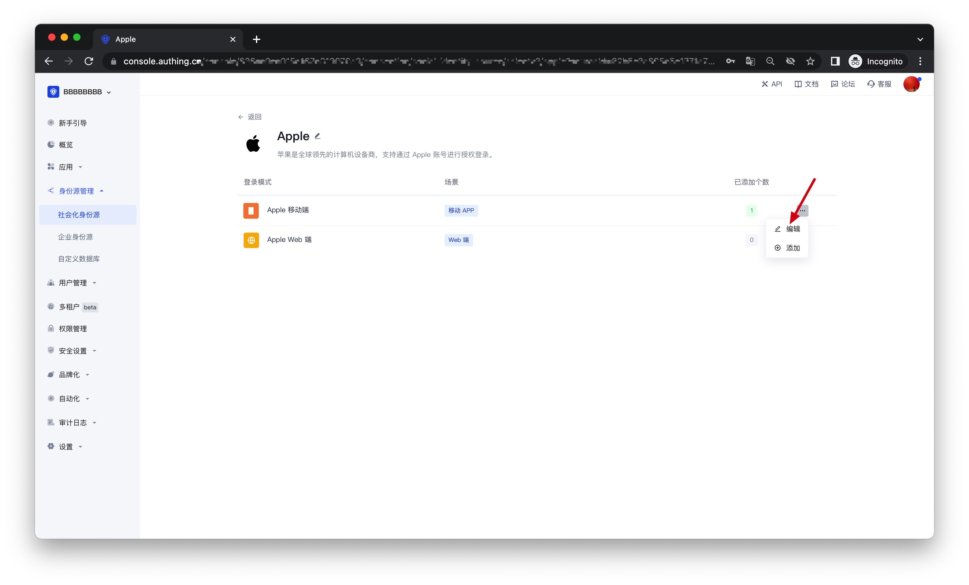 ¶ 第二步:在 Authing 控制台配置 Apple 应用