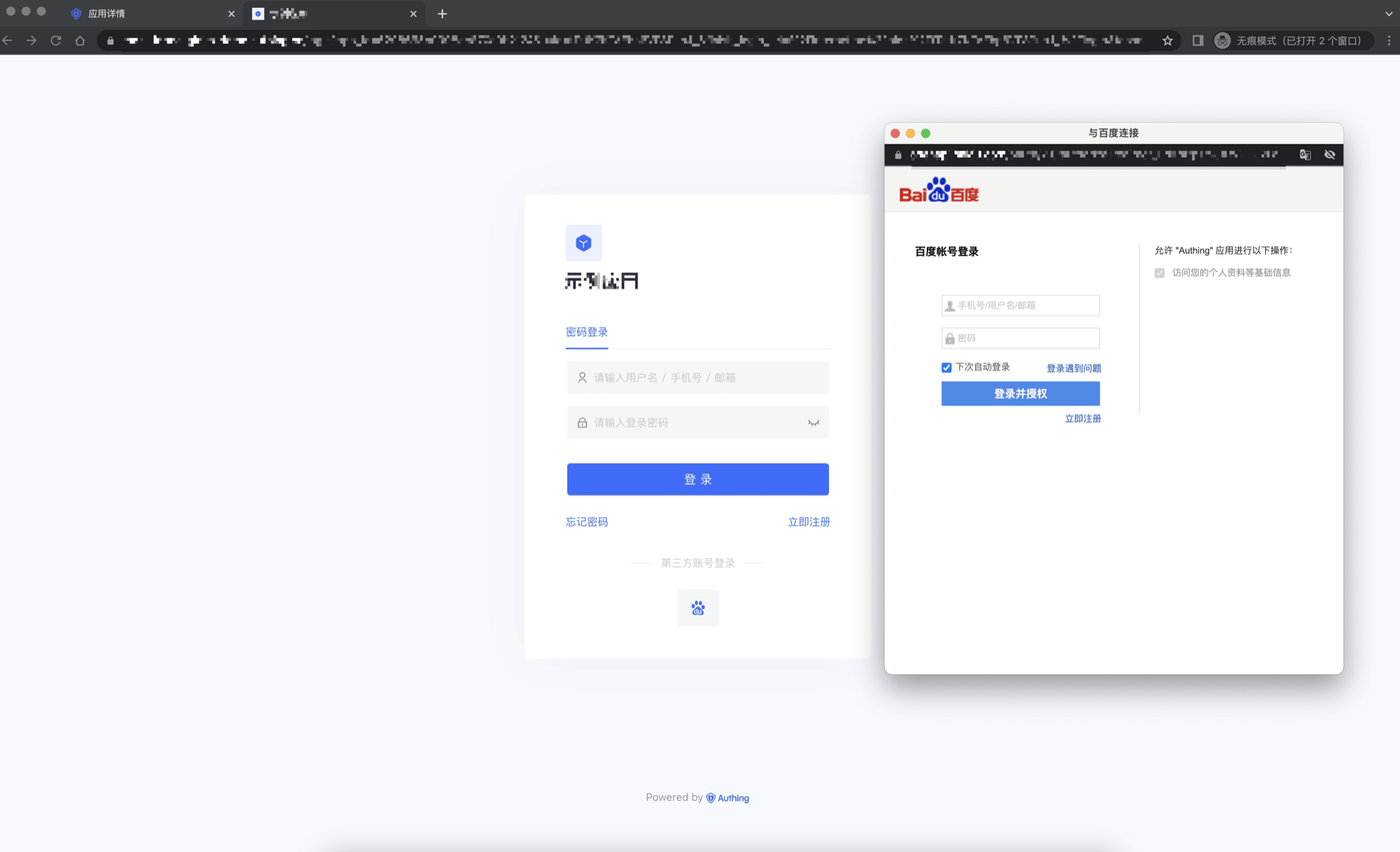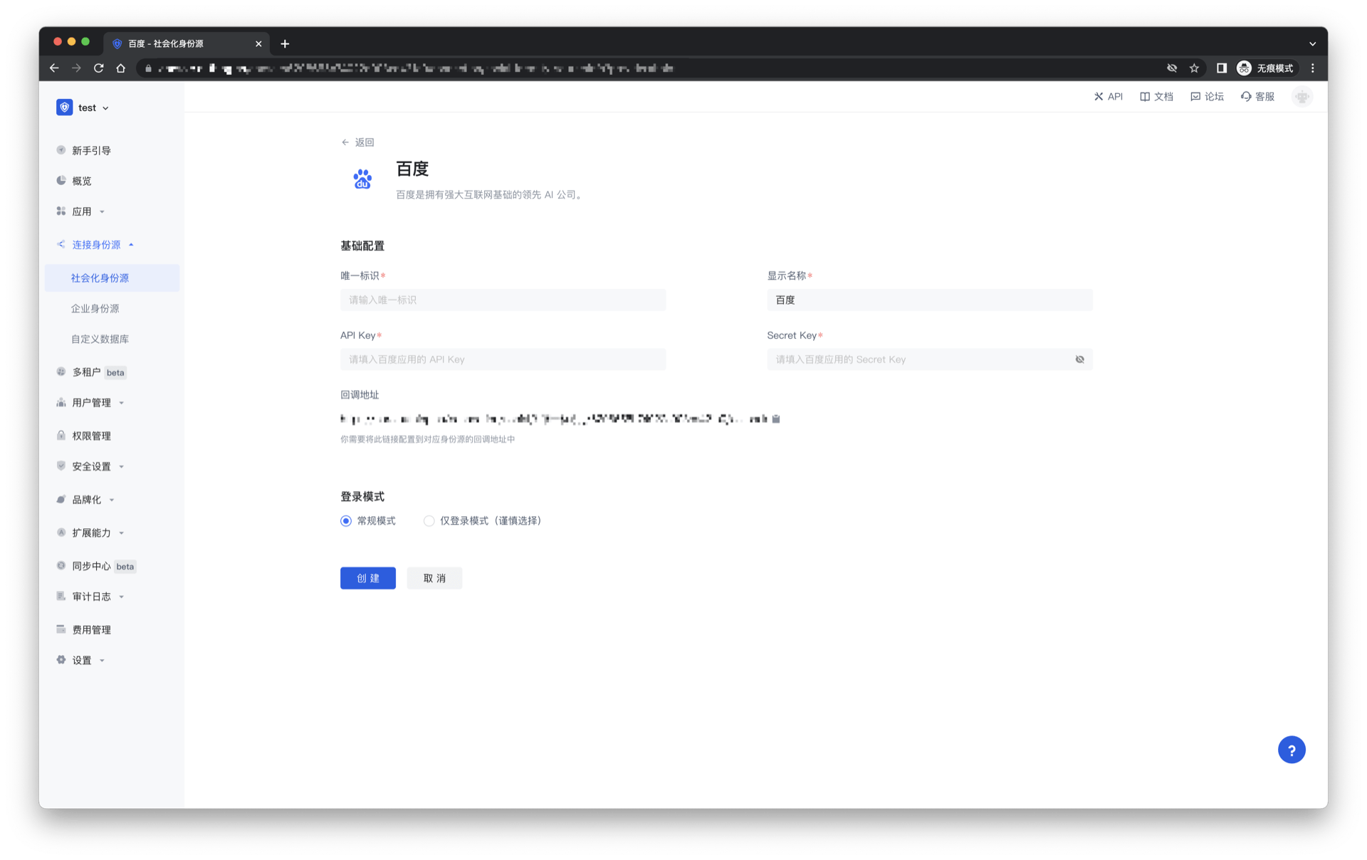 - 概述:百度社会化登录是用户以百度为身份源安全登录第三方应用或者网站。在 Authing 中配置并开启百度的社会化登录,即可实现通过 Authing 快速获取百度基本开放的信息和帮助用户实现免密登录功能。