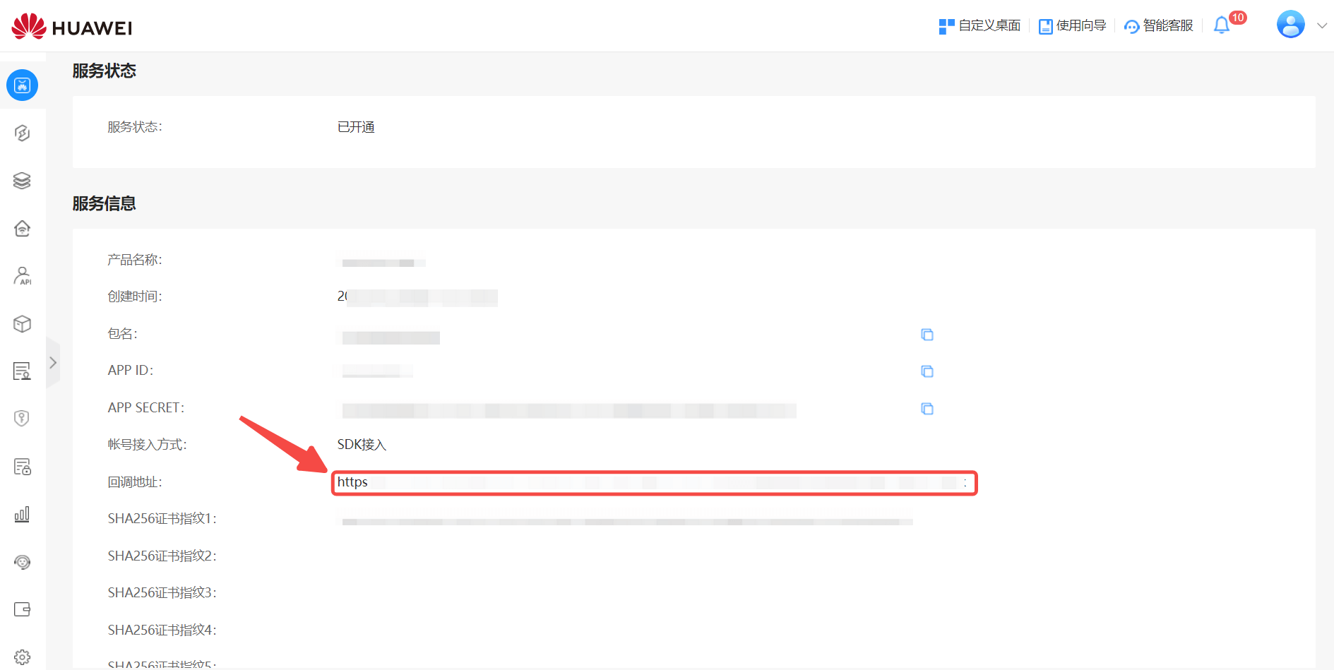 | APP Secret | 上一步获取的 华为 应用 Secret。 |