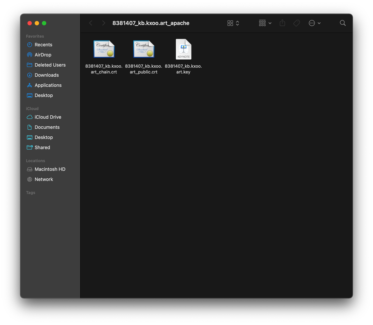 以 Apache 证书包为例,解压后有三个文件:
