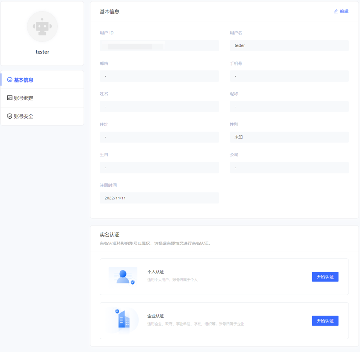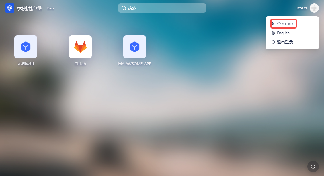 在应用面板右上角,用户可以点击 个人中心 按钮以进入用户个人中心,来编辑个人信息。